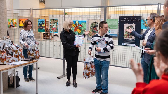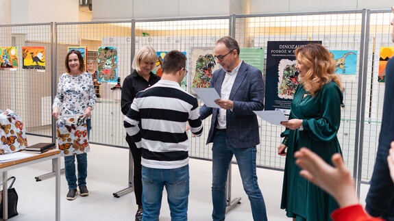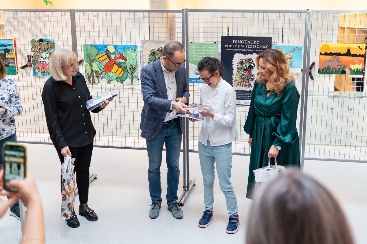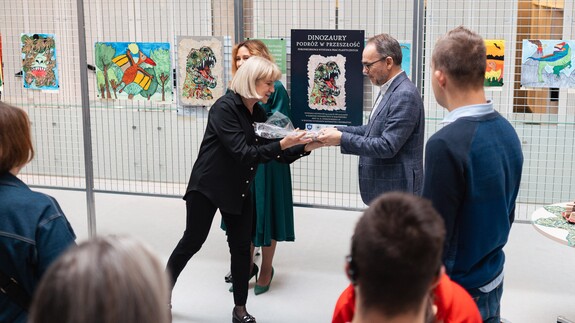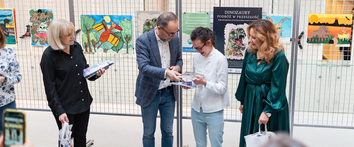 - Na konkurs wpłynęło ponad 140 prac z 14 placówek z województwa podlaskiego. Przyznaliśmy trzy nagrody główne (po dwie nagrody ex aequo I, II i III miejsce), wyróżniliśmy 28 prac oraz dodatkowo jedna praca została wyróżniona przez prof. dr. hab. Mirosława Ratkiewicza. Chcę podkreślić z wielką dumą, że wszyscy uczestnicy konkursu sprawili się bardzo dobrze, dlatego, że dzieci uwielbiają dinozaury i mają w sobie duszę paleontologa. Dinozaury jako istoty odległe w czasie i wielkie, działają na wyobraźnię dzieci. Te prehistoryczne gady zdobyły sympatię wszystkich uczestników Konkursu - mówiła podczas uroczystego otwarcia wystawy dr Anna Matwiejuk, dyrektor Uniwersyteckiego Centrum Przyrodniczego.