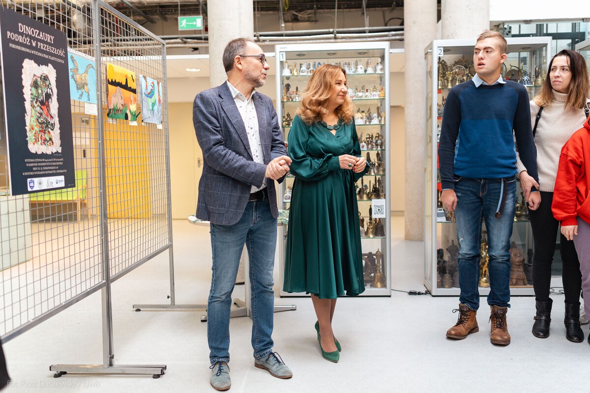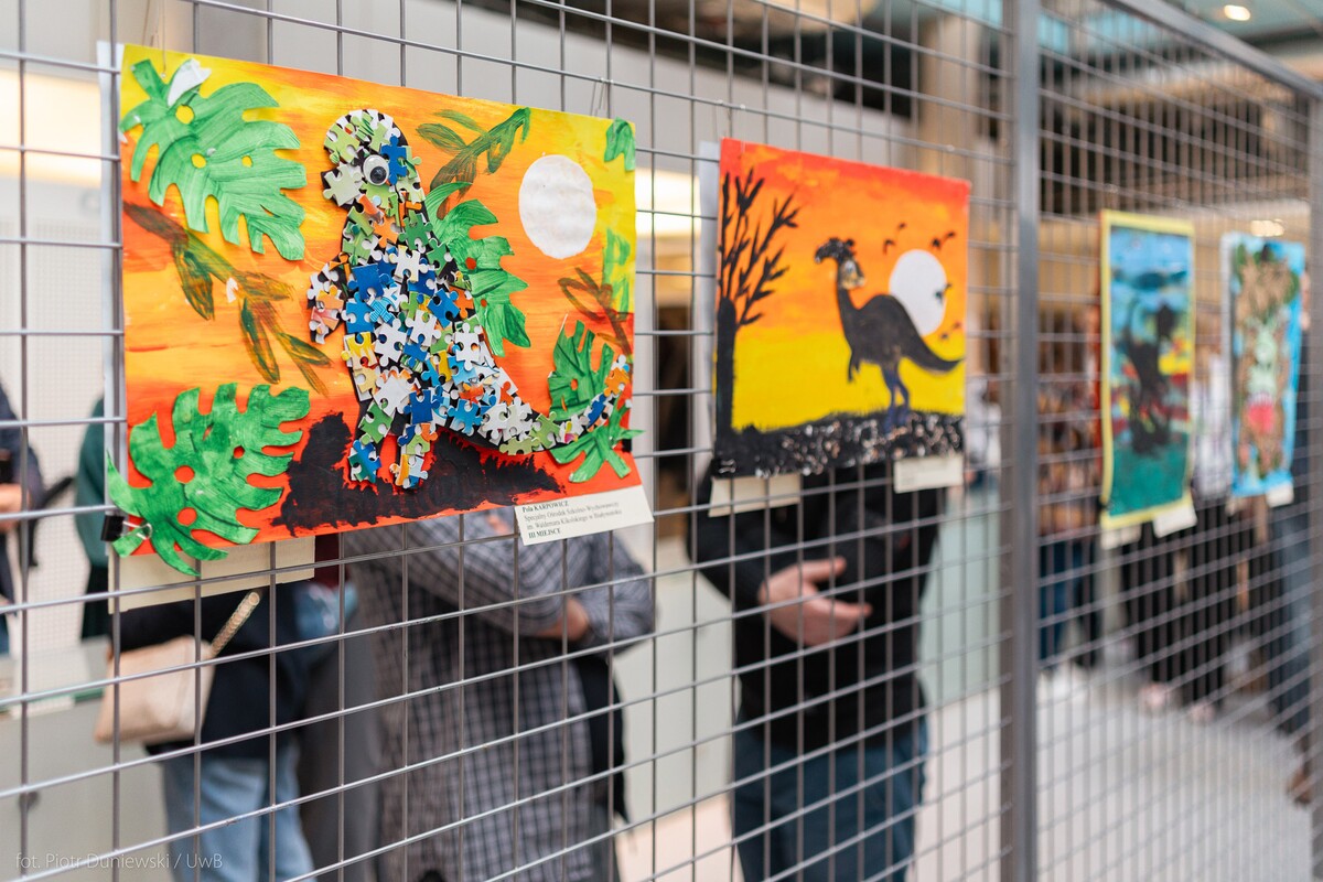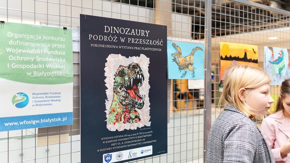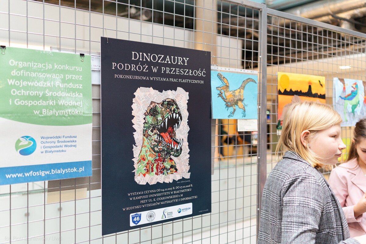 Allozaury, brachiozaury, diplodoki, spinozaury, triceratopsy, tyranozaury Rex - to bohaterowie wystawy plastycznej, która we wtorek, 4 listopada, została otwarta w siedzibie Wydziałów Matematyki i Informatyki UwB (na parterze) przy ul. K. Ciołkowskiego 1M. Autorami prac są uczniowie z  placówek szkolnictwa specjalnego z województwa podlaskiego, którzy wzięli udział w III Podlaskim Ekologicznym Konkursie Plastycznym pt. „Dinozaury – podróż w przeszłość”. Wystawę można oglądać do 27 lutego 2026 r.
