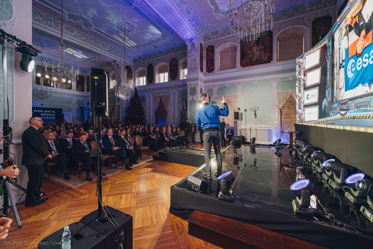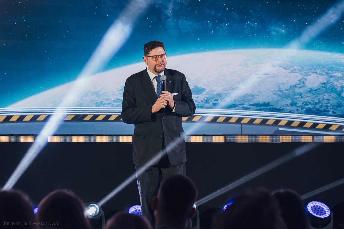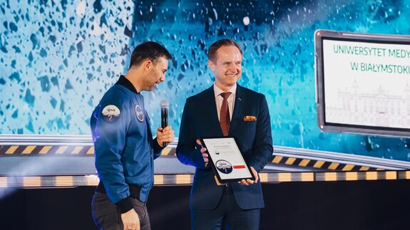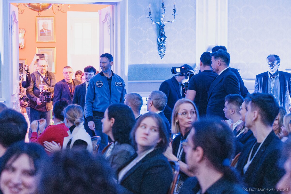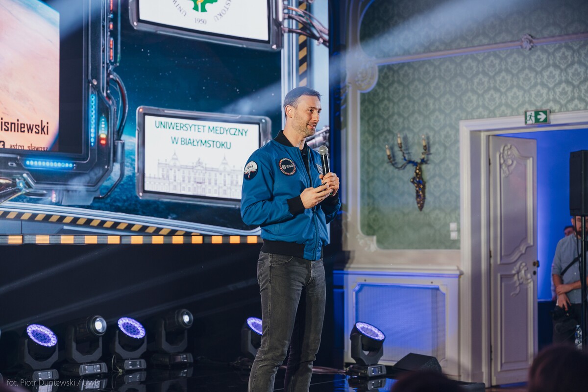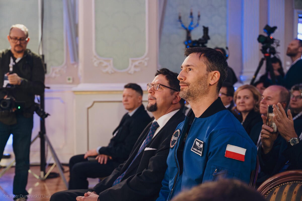 Studenci, doktoranci i naukowcy Uniwersytetu w Białymstoku, w tym rektor uczelni prof. Mariusz Popławski, wzięli udział w niezwykłym spotkaniu z polskim astronautą dr. Sławoszem Uznańskim-Wiśniewskim, który w czwartek, 18 grudnia 2025 r. przyjechał do stolicy Podlasia. Wydarzenie odbyło się na Uniwersytecie Medycznym w Białymstoku i zgromadziło setki osób, w tym wielu pasjonatów kosmosu.