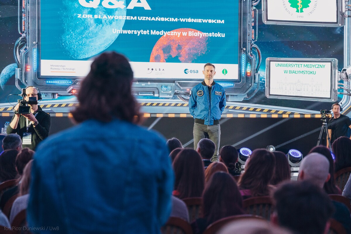 Zgromadzona na spotkaniu społeczność akademicka również została zaproszona do zadawania pytań dr. Uznańskiemu-Wiśniewskiemu. Studenci Uniwersytetu w Białymstoku pytali m.in. o eksperyment związany z mikroglonami wulkanicznymi zabranymi w kosmos, czy o rolę chemików w wyprawach kosmicznych.