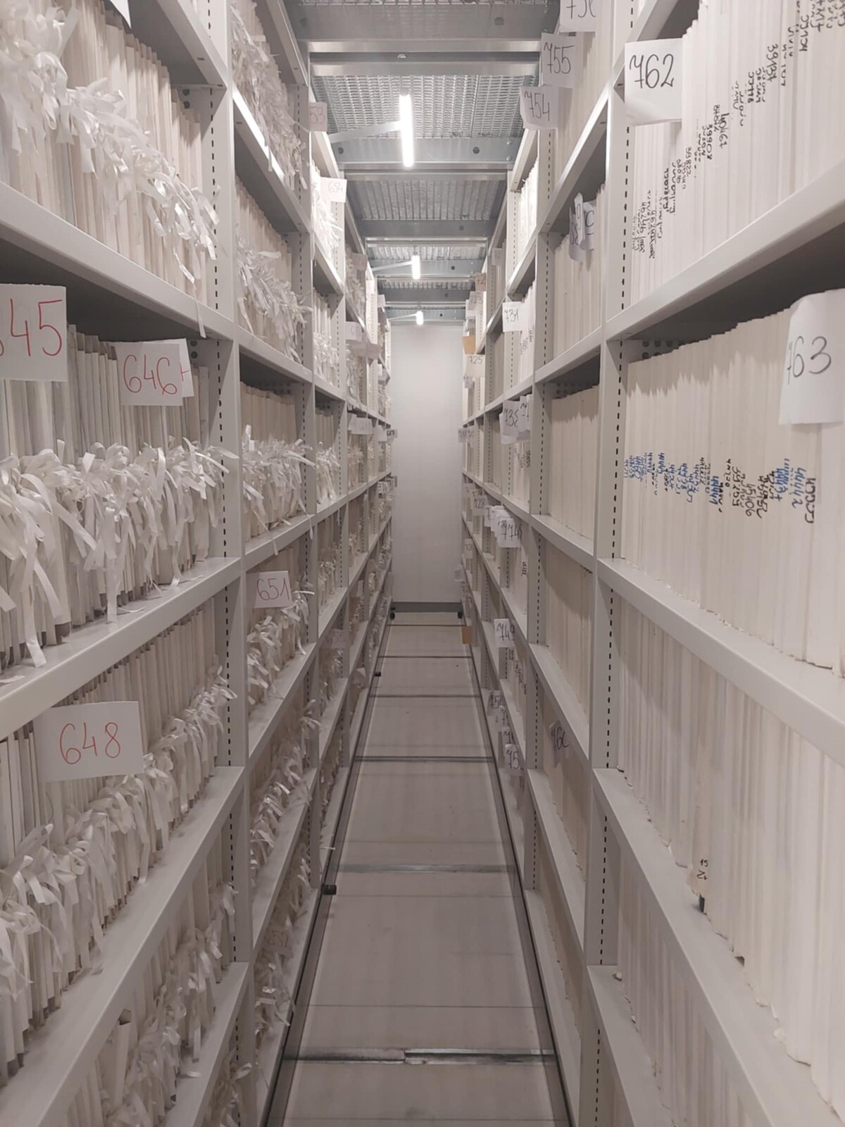 Pierwszy poziom magazynu został już prawie w całości zapełniony dokumentacją przeniesioną z dawnych magazynów znajdujących się przy ul. Pogodnej 65 oraz Żeromskiego 1.