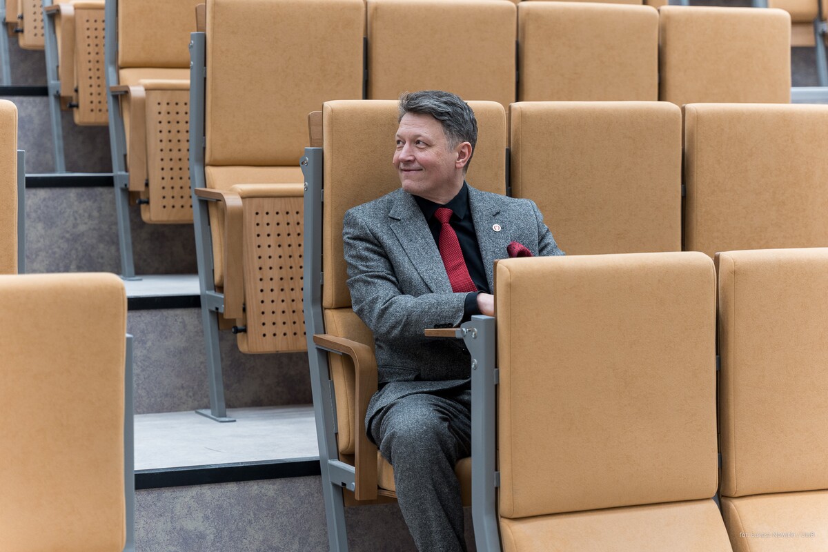 W trakcie konferencji wyjaśniał, że przestrzeń nowego obiektu została zaplanowana w określony sposób. Na parterze znajdą się m.in. dziekanaty i pokoje dziekanów i prodziekanów – to ułatwi studentom i osobom z zewnątrz załatwianie spraw formalnych. Parter to także strefa gastro, strefa odpoczynku, czytelnia. I piętro to kondygnacja dydaktyczna (sale wykładowe, sale ćwiczeniowe, sale seminaryjne). Na ostatnim piętrze znajdą się katedry, czy zakłady wszystkich humanistycznych jednostek.