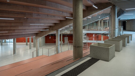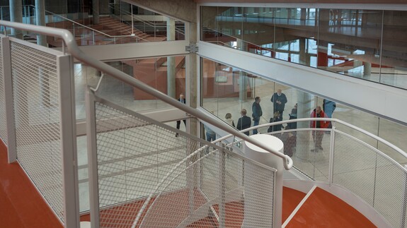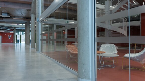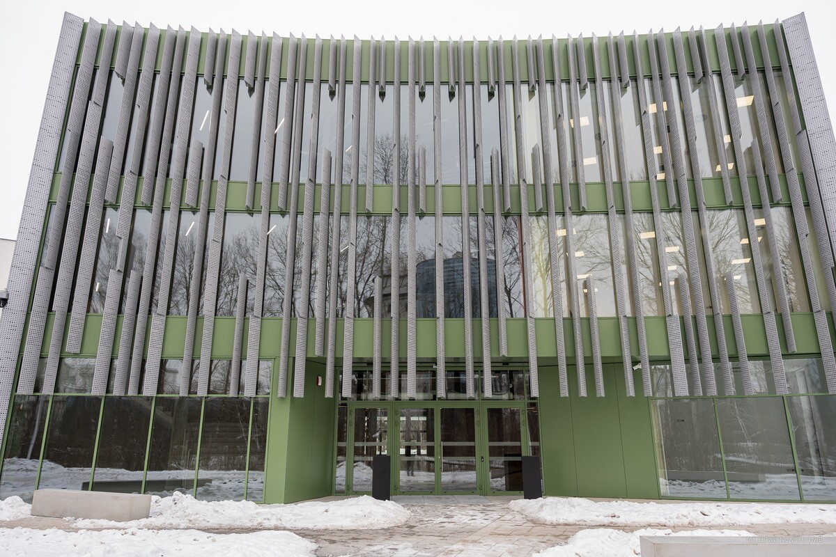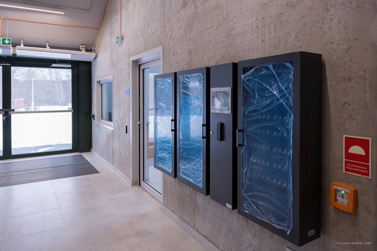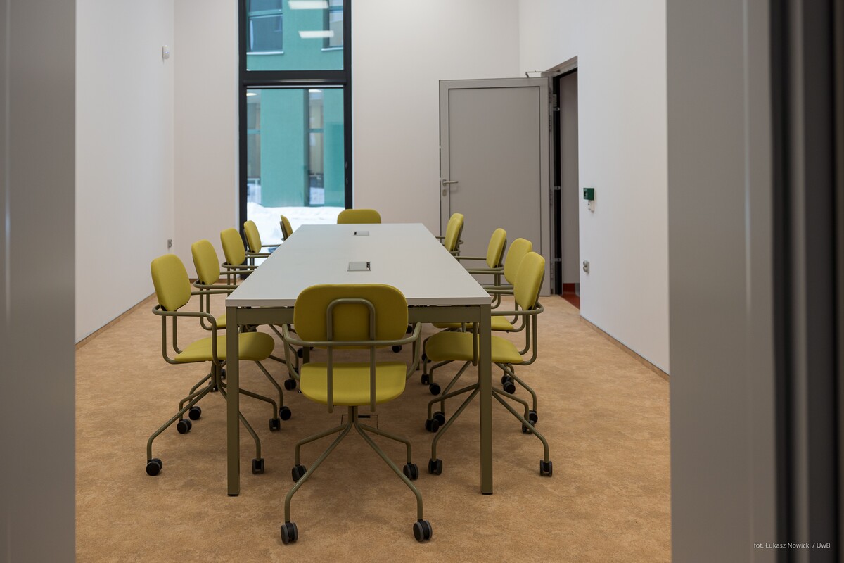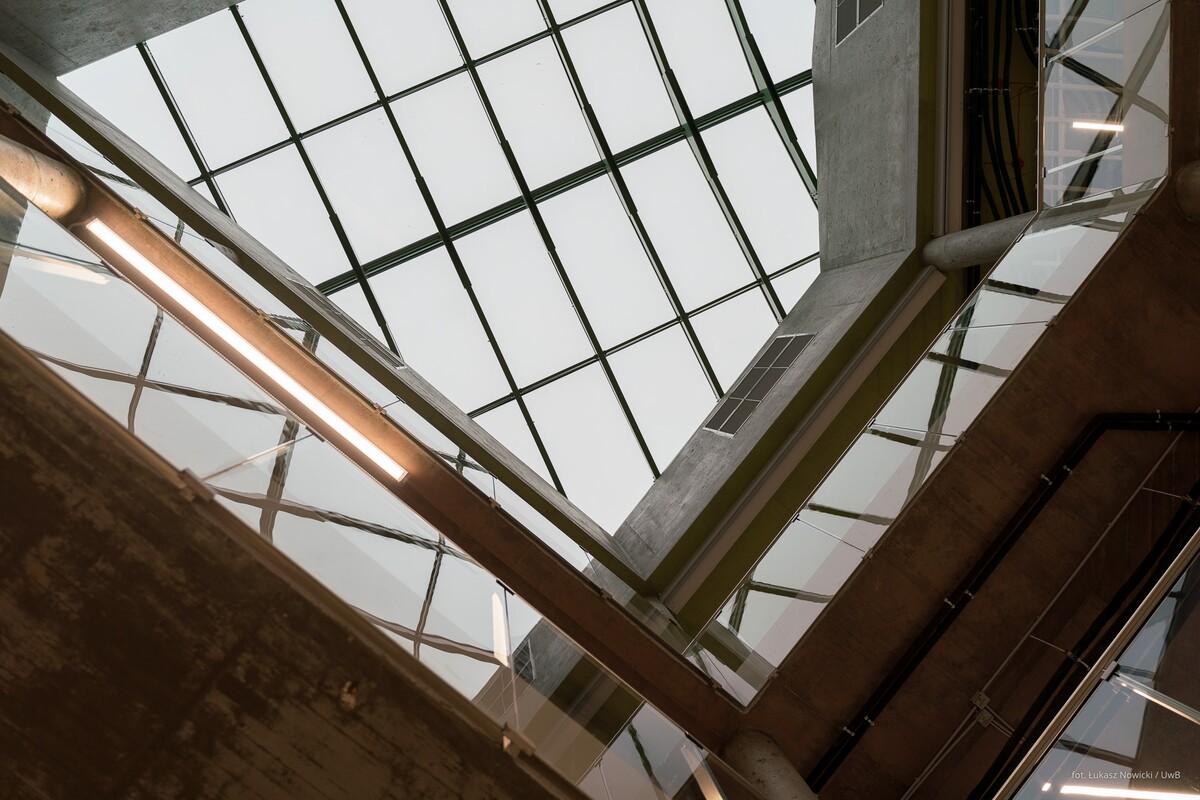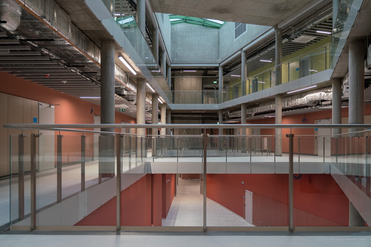 Na poziomie I piętra obiekt jest połączony nadziemną zabudowaną kładką z położoną obok Biblioteką Uniwersytecką – o czym wspomniał w trakcie konferencji dr hab. Marek Kochanowski, prof. UwB dyrektor Biblioteki Uniwersyteckiej im. Jerzego Giedroycia.