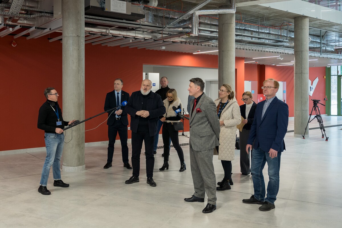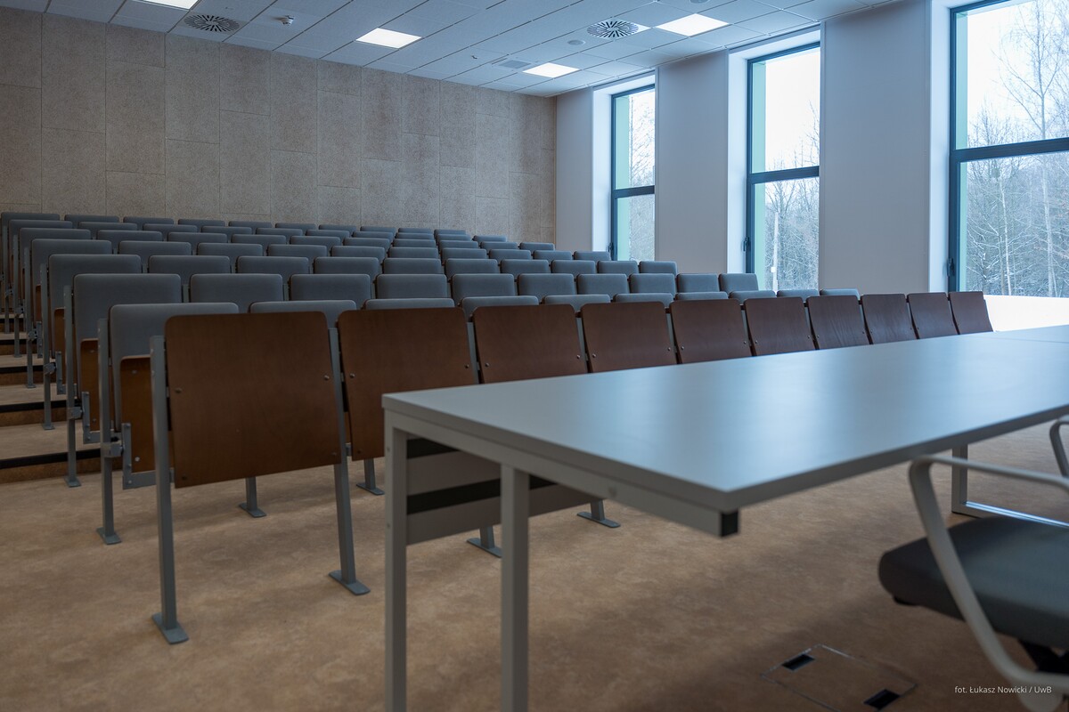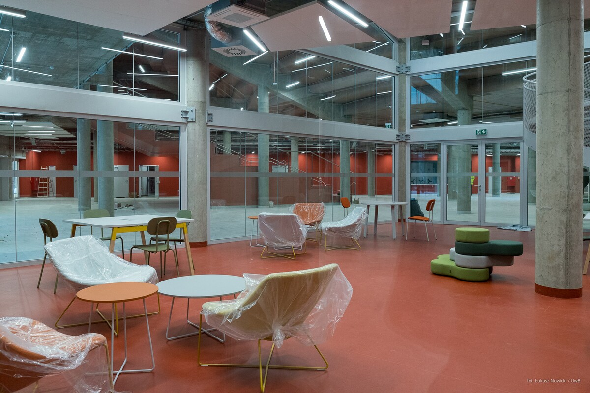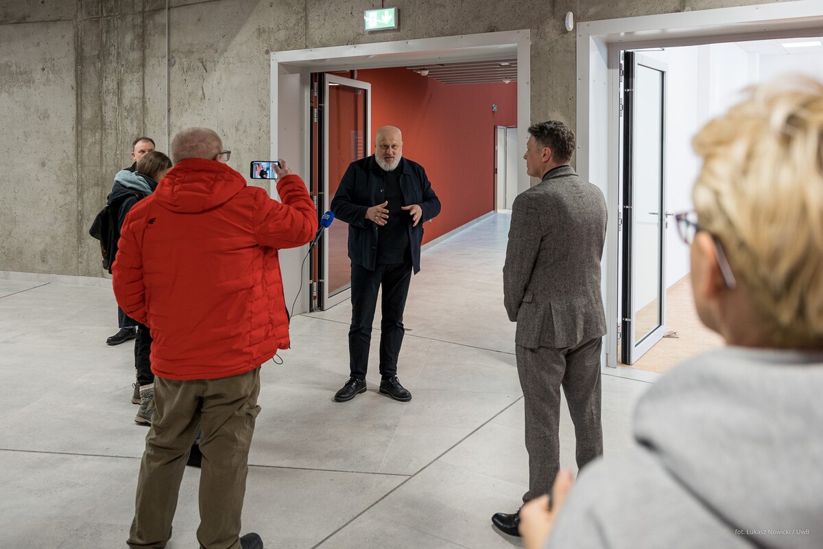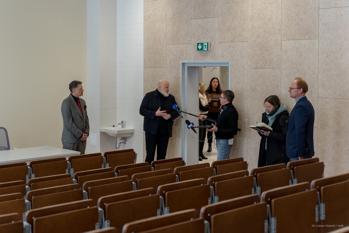 Prace budowlane zostały zakończone, w najbliższych dniach zostanie powołana komisja odbiorowa. Budynek jest już częściowo wyposażony – to najważniejsze informacje dotyczące gmachu uniwersyteckiej humanistyki w kampusie UwB, który we wtorek, 10 lutego 2026 r., uczelnia zaprezentowała mediom. Zajęcia w nowej siedzibie rozpoczną się w październiku, a przeniesie się do niej ok. 2 tysięcy studentów, pracowników naukowych i administracyjnych.