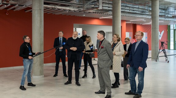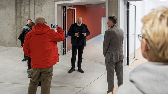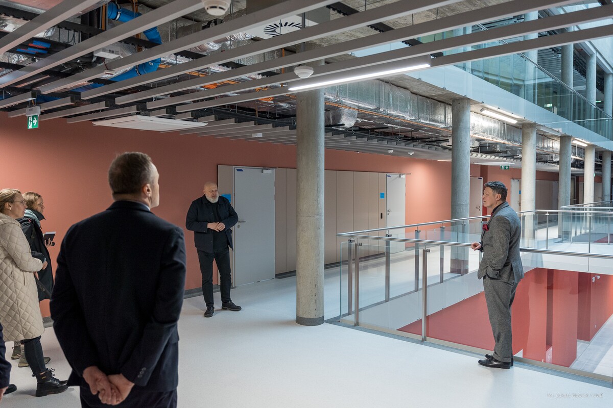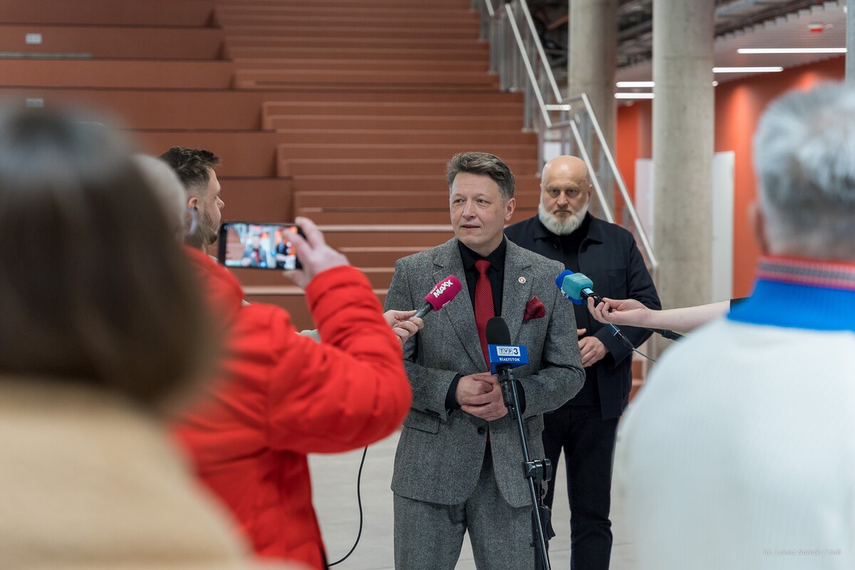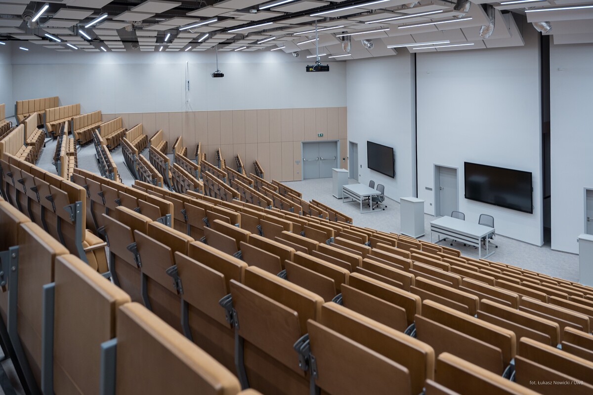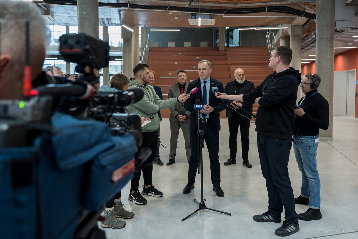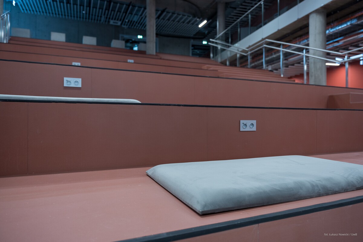 Prace budowlane zostały zakończone, w najbliższych dniach zostanie powołana komisja odbiorowa. Budynek jest już częściowo wyposażony – to najważniejsze informacje dotyczące gmachu uniwersyteckiej humanistyki w kampusie UwB, który we wtorek, 10 lutego 2026 r., uczelnia zaprezentowała mediom. Zajęcia w nowej siedzibie rozpoczną się w październiku, a przeniesie się do niej ok. 2 tysięcy studentów, pracowników naukowych i administracyjnych.