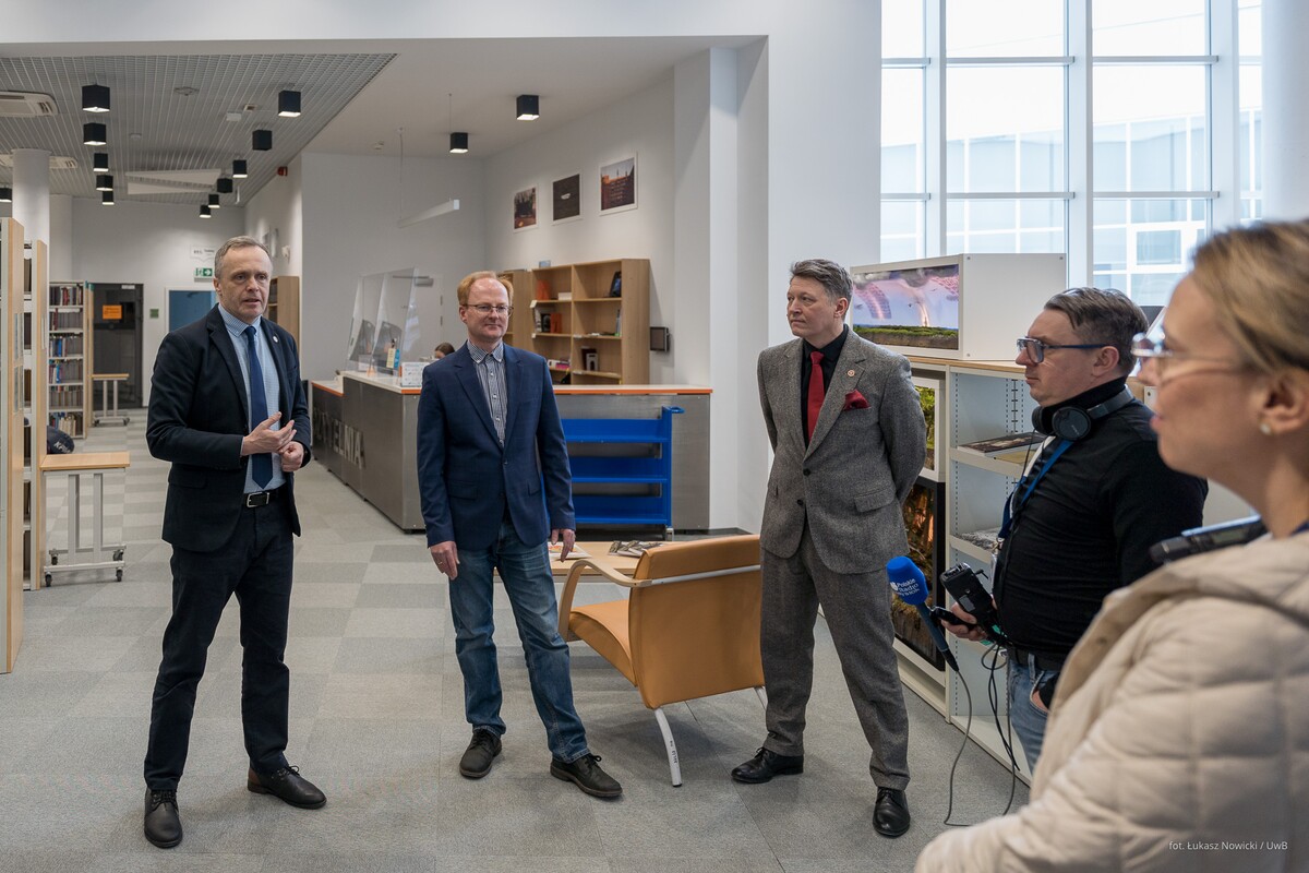 W spotkaniu z mediami wzięli udział rektor UwB prof. dr hab. Mariusz Popławski, kanclerz uczelni Tomasz Zalewski, dyrektor Biblioteki Uniwersyteckiej dr hab. Marek Kochanowski, prof. UwB, a także Piotr Kobryń – kierownik Działu Inwestycji i Remontów i kierownik Działu Promocji Agnieszka Jabłońska-Perkowska z zespołem. Dziennikarze mieli okazję nie tylko uzyskać najważniejsze informacje o inwestycji, ale także zwiedzić nowy gmach.