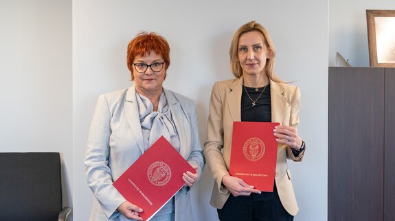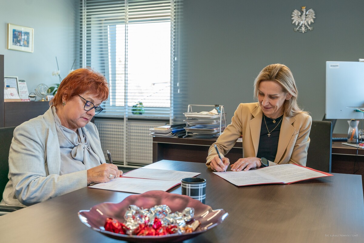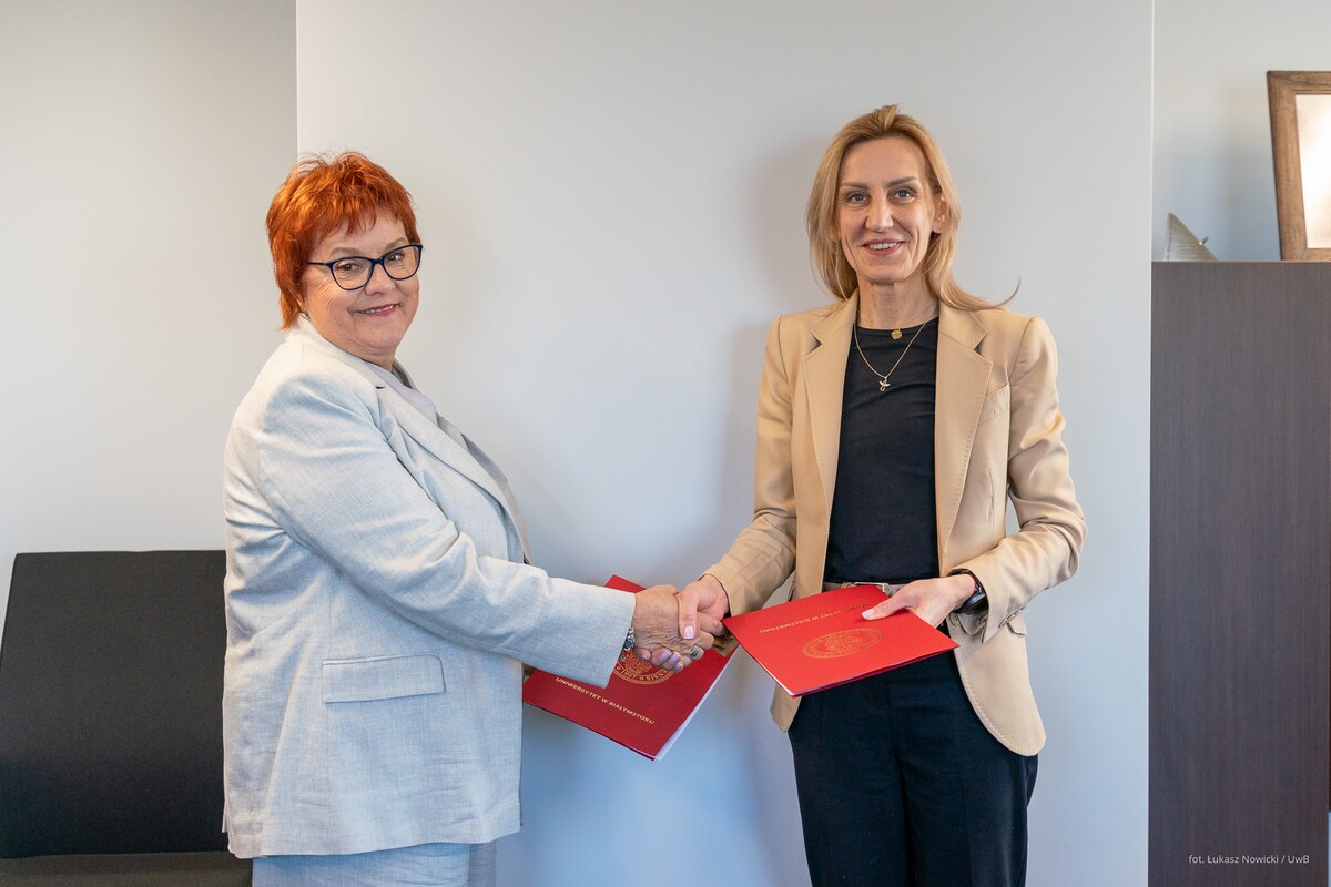 Prorektor ds. studentów i doktorantów Uniwersytetu w Białymstoku dr hab. Anna Gardocka-Dubatówka, prof. UwB oraz dr Maria Siewko – Podlaski Państwowo Wojewódzki Inspektor Sanitarny w Białymstoku podpisały we wtorek, 21 kwietnia br. porozumienie dotyczące organizacji olimpiady wiedzy o grzybach. Umowę ze strony uczelni będzie realizowało Uniwersyteckie Centrum Przyrodnicze im. Profesora Andrzeja Myrchy.