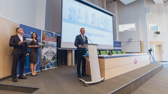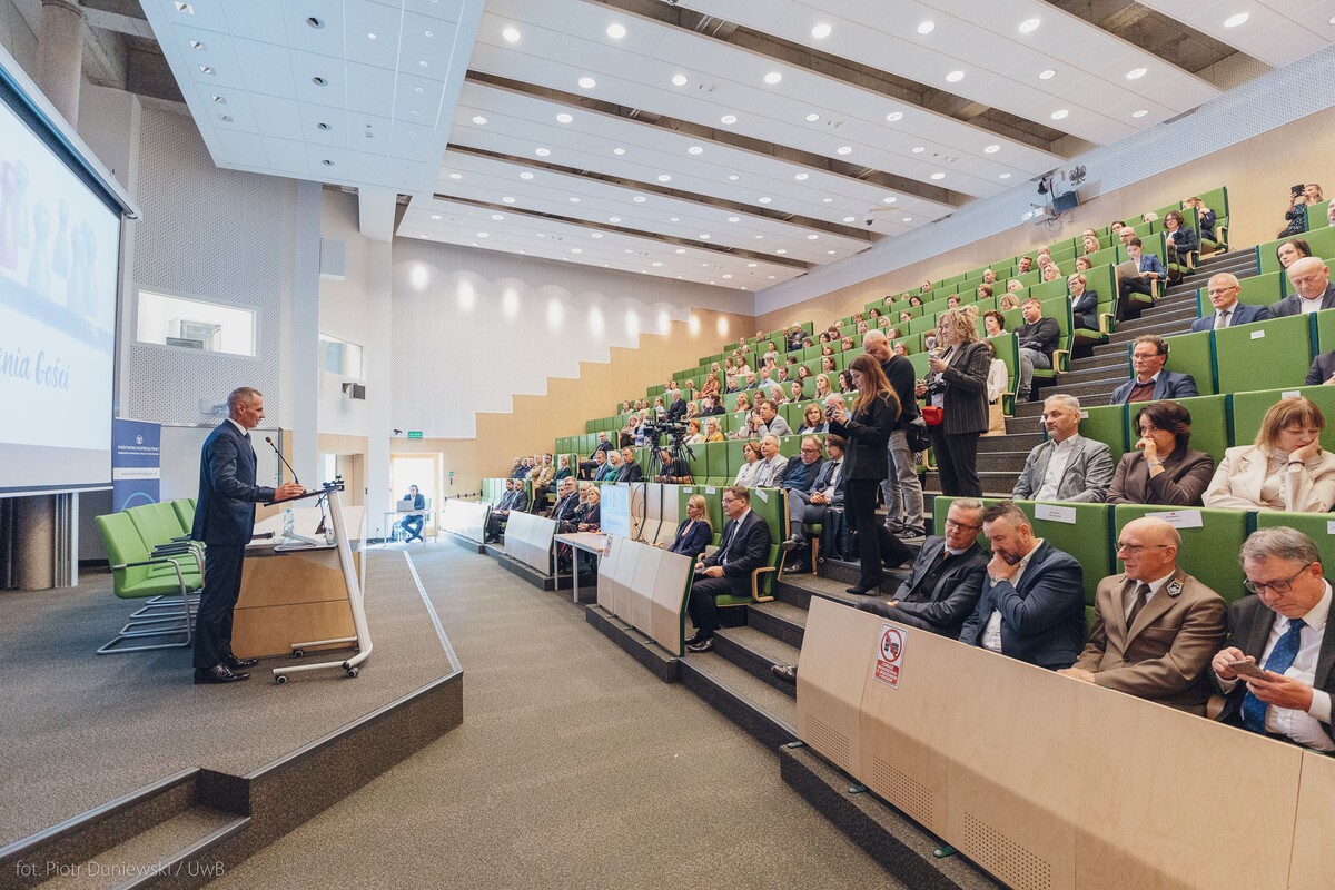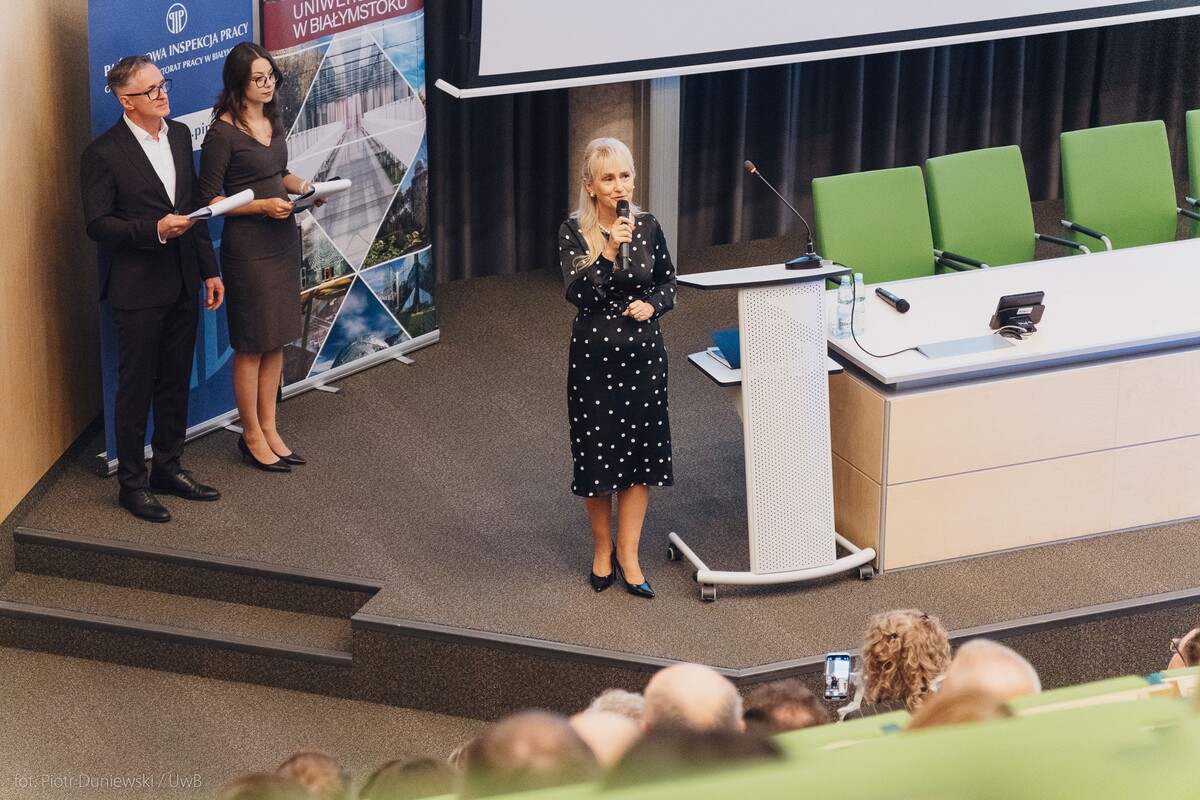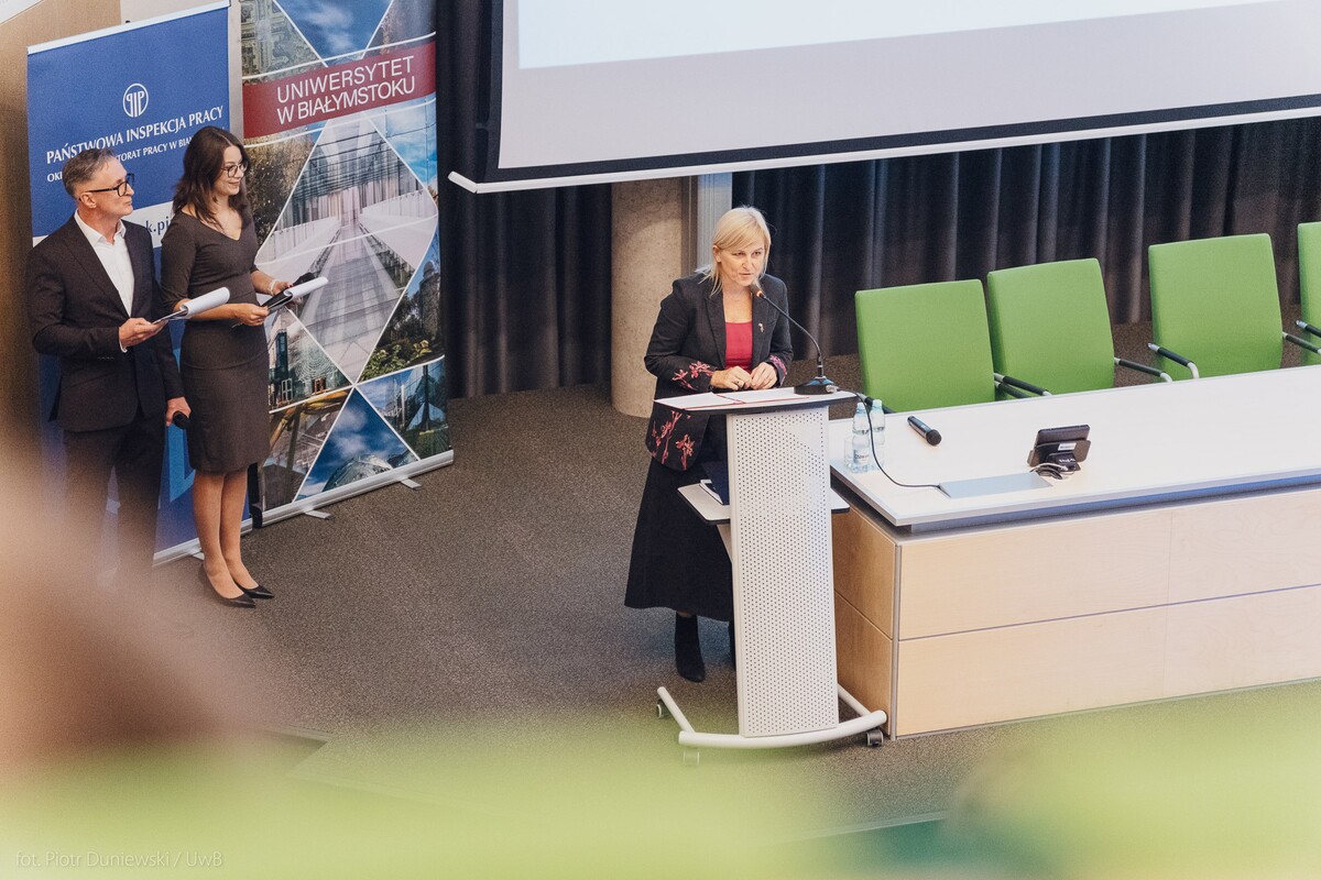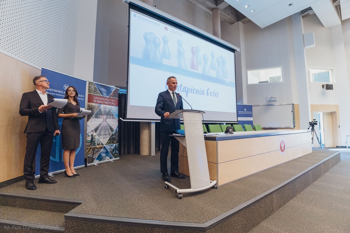 - W imieniu rektora Uniwersytetu w Białymstoku prof. Mariusza Popławskiego pragnę wyrazić prawdziwą radość z tego powodu, że to nasz uniwersytet jest miejscem, w którym będziemy rozmawiali o sprawach niekoniecznie nam wszystkim dobrze znanych, ale na pewno ważnych. Takich, które organizują nasze życie i zawodowe, i osobiste, ponieważ wszyscy zdajemy sobie sprawę – przeszliśmy przecież szkolenia – że relacje międzyludzkie są podstawą nie tylko dobrego samopoczucia w miejscu pracy, ale też efektywnego wykonywania pracy – mówił, witając gości, prorektor UwB ds. kształcenia dr hab. Krzysztof Korotkich prof. UwB.