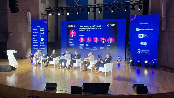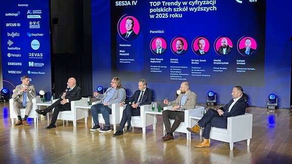 Prof. UwB Tomasz Bajkowski wziął udział w sesji pt. Top trendy w cyfryzacji polskich szkół w 2025 roku. W swoim wystąpieniu mówił m.in. o rozwiązaniach cyfrowych na Uniwersytecie w Białymstoku, przypominając skąd wziął się „boom” na cyfryzację. Wymienił tutaj kilka istotnych czynników: pandemia, cyberbezpieczeństwo, konieczność bezpiecznego i cyfrowego obiegu dokumentacji, uatrakcyjnienie zajęć dydaktycznych, czy rozwój sztucznej inteligencji, która często postrzegana jest jako zagrożenie, ale może być też szansą na rozwój.
