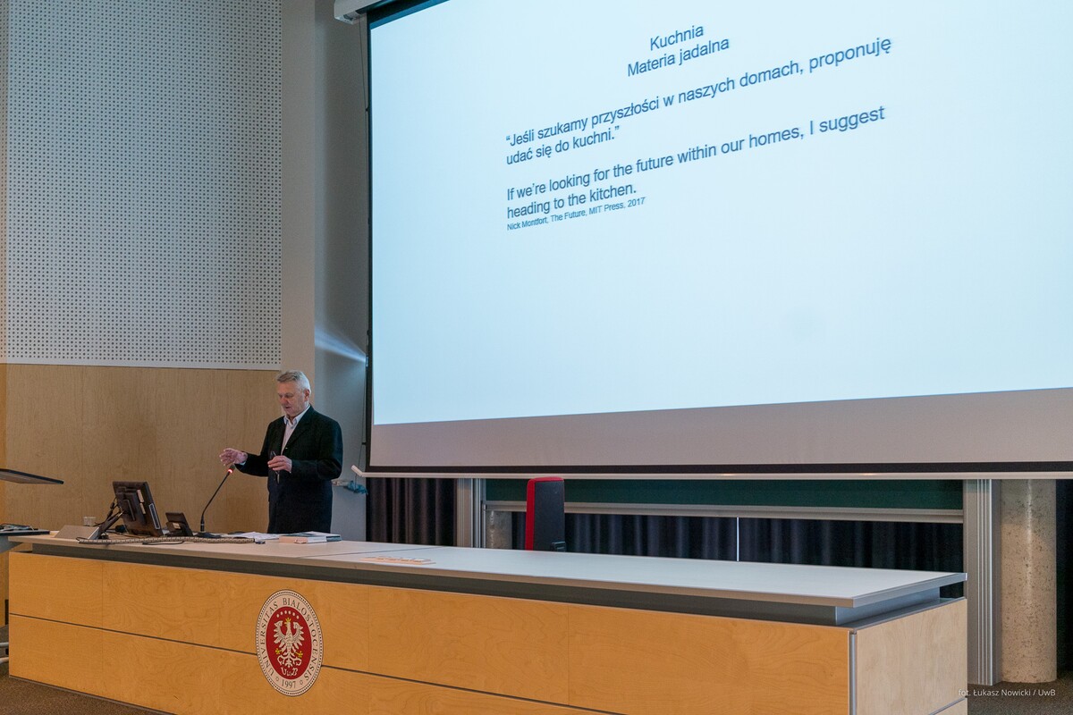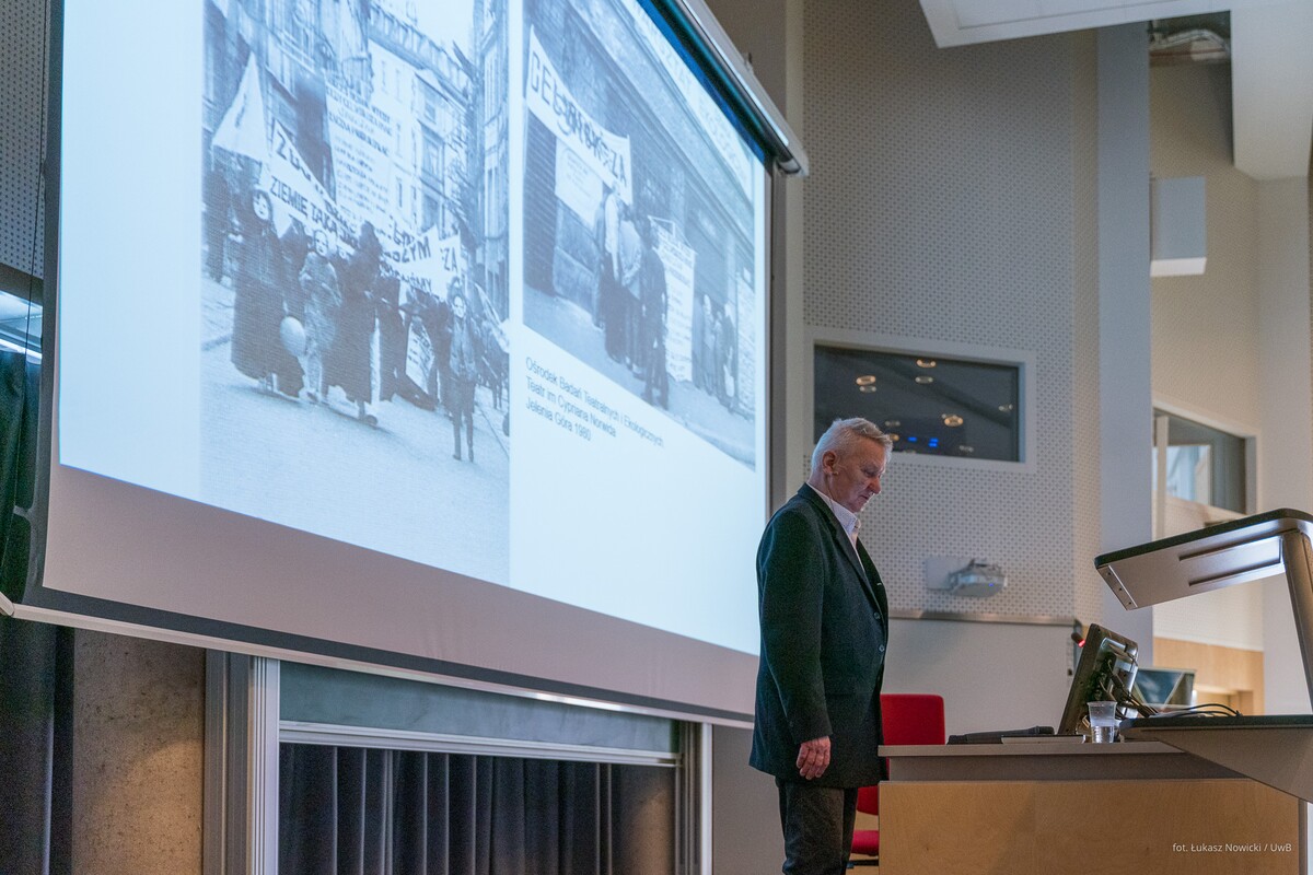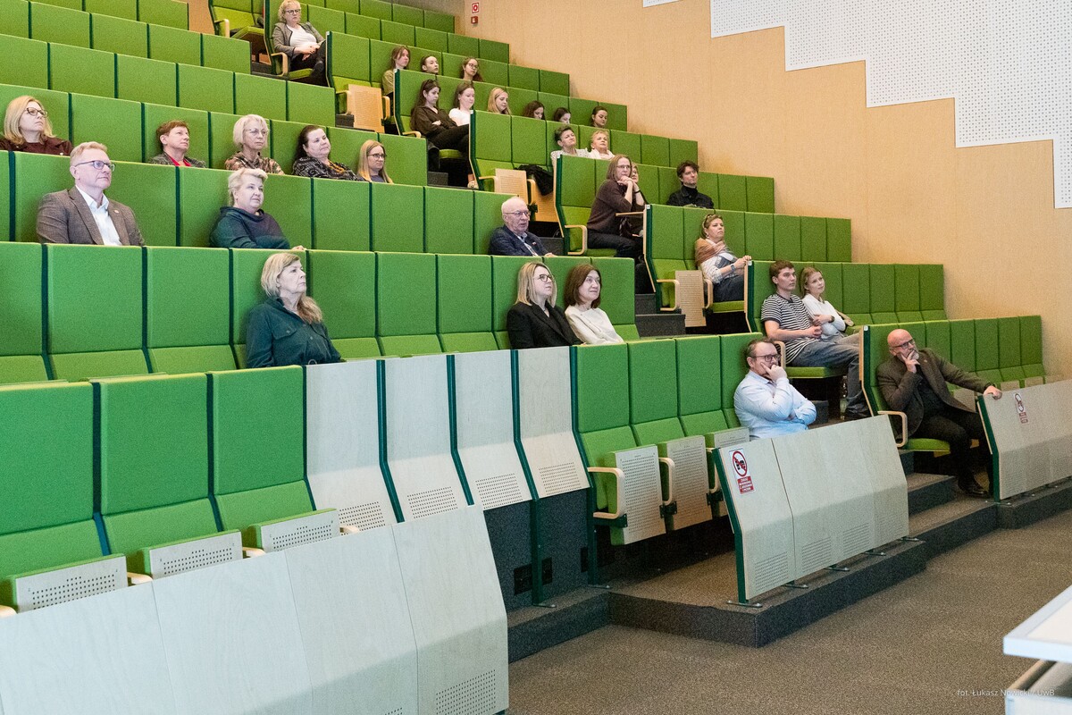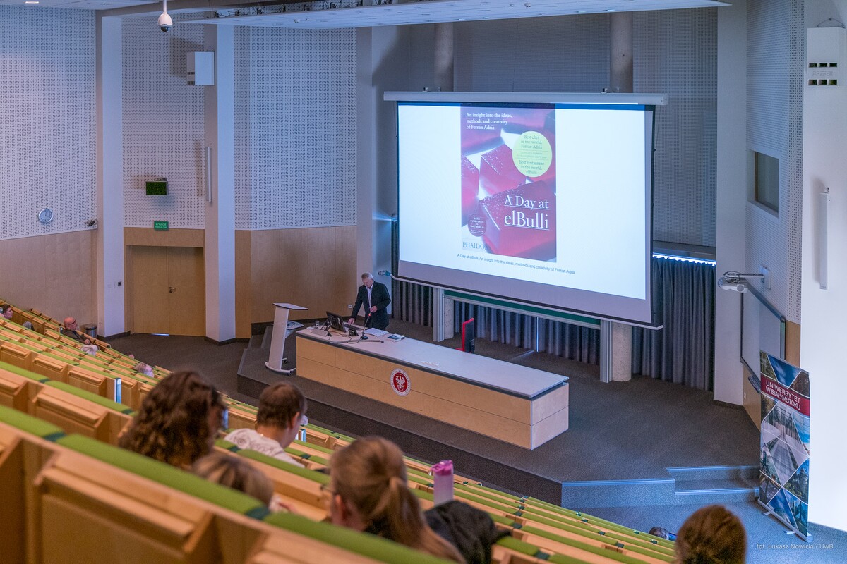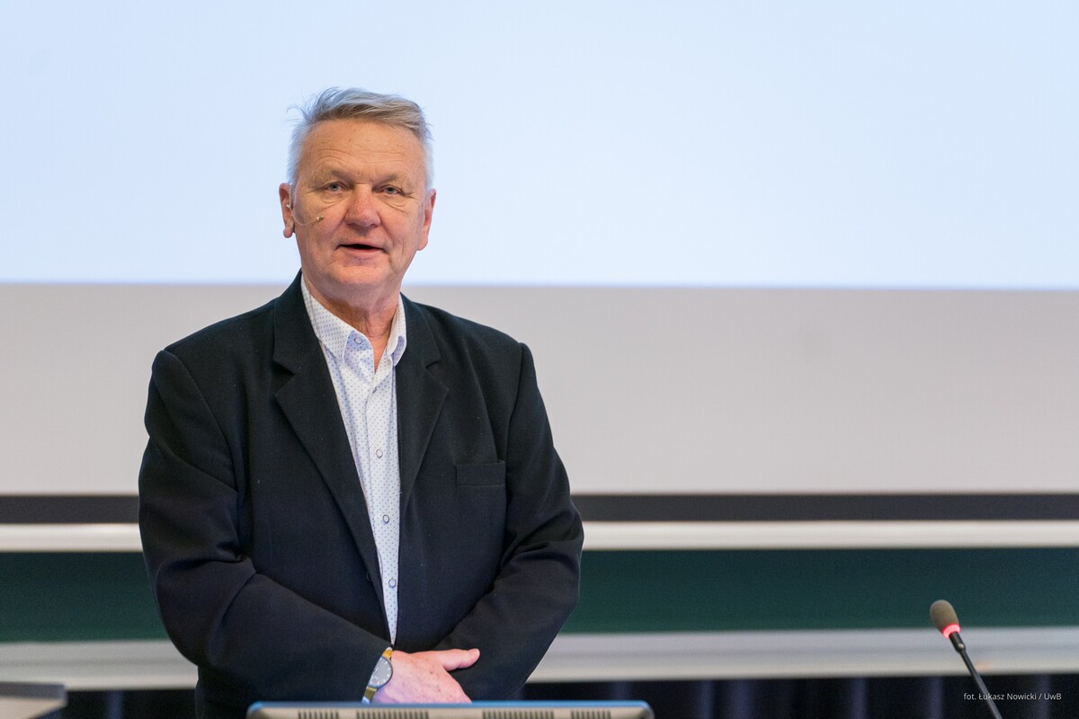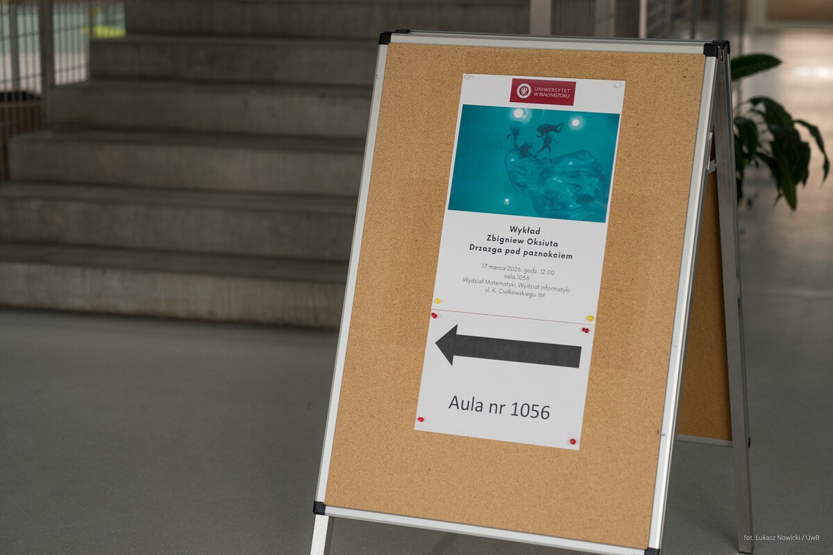 Gościa oficjalnie przywitał prorektor uczelni ds. rozwoju dr hab. Tomasz Bajkowski, prof. UwB, który wspomniał, że na największej podlaskiej uczelni – właśnie dzięki Zbigniewowi Oksiucie - może powstać interdyscyplinarne Laboratorium, łączące sztukę i architekturę z myślą biologiczną, chemiczną, filozoficzną, edukacyjną.