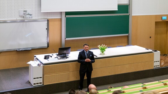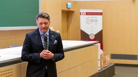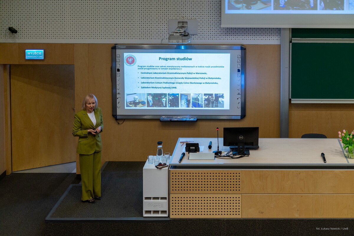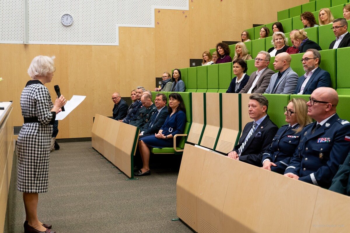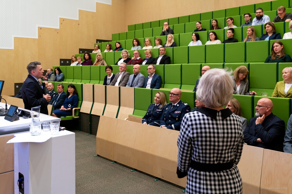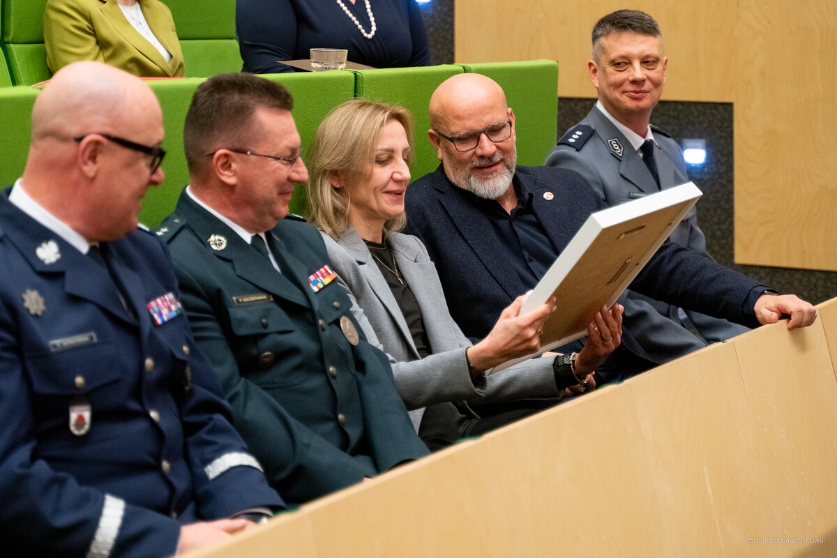 - Rozpoczynamy celebrowanie ogromnego sukcesu nie tylko z perspektywy Wydziału Chemii, ale też całego Uniwersytetu. Otrzymaliśmy certyfikat, na który zasłużyło tylko 16 kierunków w skali kraju. To pokazuje, w jak elitarnym gronie znaleźliśmy się. Dziękuję i gratuluję kolegium dziekańskiemu Wydziału Chemii oraz pracownikom i wszystkim osobom zaangażowanym w utworzenie i prowadzenie tego kierunku. Ten certyfikat potwierdza, że wspaniale potrafimy współpracować z otoczeniem społeczno-gospodarczym. Dobra nauka jest wtedy, jeżeli jest realizowana we współpracy ze znakomitymi specjalistami – mówił podczas uroczystości rektor UwB prof. Mariusz Popławski, dziękując przedstawicielom służb mundurowych i instytucji państwowych za zaangażowanie przy tworzeniu kierunku chemia kryminalistyczna i sądowa.
