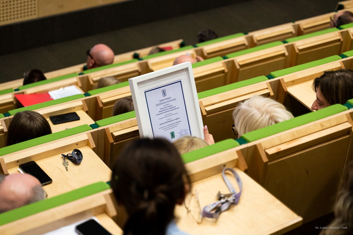 - Panie Rektorze serdecznie dziękuję za bardzo miłe słowa. Myślę, że każdy z nas wziął je sobie do serca. Obiecujemy, że będziemy nadal starać się tak samo jak do tej pory, a może nawet bardziej. Chcemy, by ten certyfikat nie był tylko incydentalnym sukcesem, ale żeby wpisał się w naszą historię – mówiła dziekan Wydziału Chemii prof. Joanna Karpińska.