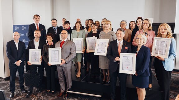 W środę, 25 marca br., przedstawiciele 14 uczelni z całej Polski, które spełniły kryteria wynikające z procedury przyznawania Certyfikatów, spotkali się w Warszawie, by odebrać wyróżnienia z rąk dr. hab. inż. Janusza Uriasza, przewodniczącego Polskiej Komisji Akredytacyjnej oraz prof. Marii Mrówczyńskiej wiceminister nauki i szkolnictwa wyższego. Największą podlaską uczelnię reprezentowali rektor UwB prof. Mariusz Popławski oraz dziekan Wydziału Chemii prof. Joanna Karpińska.