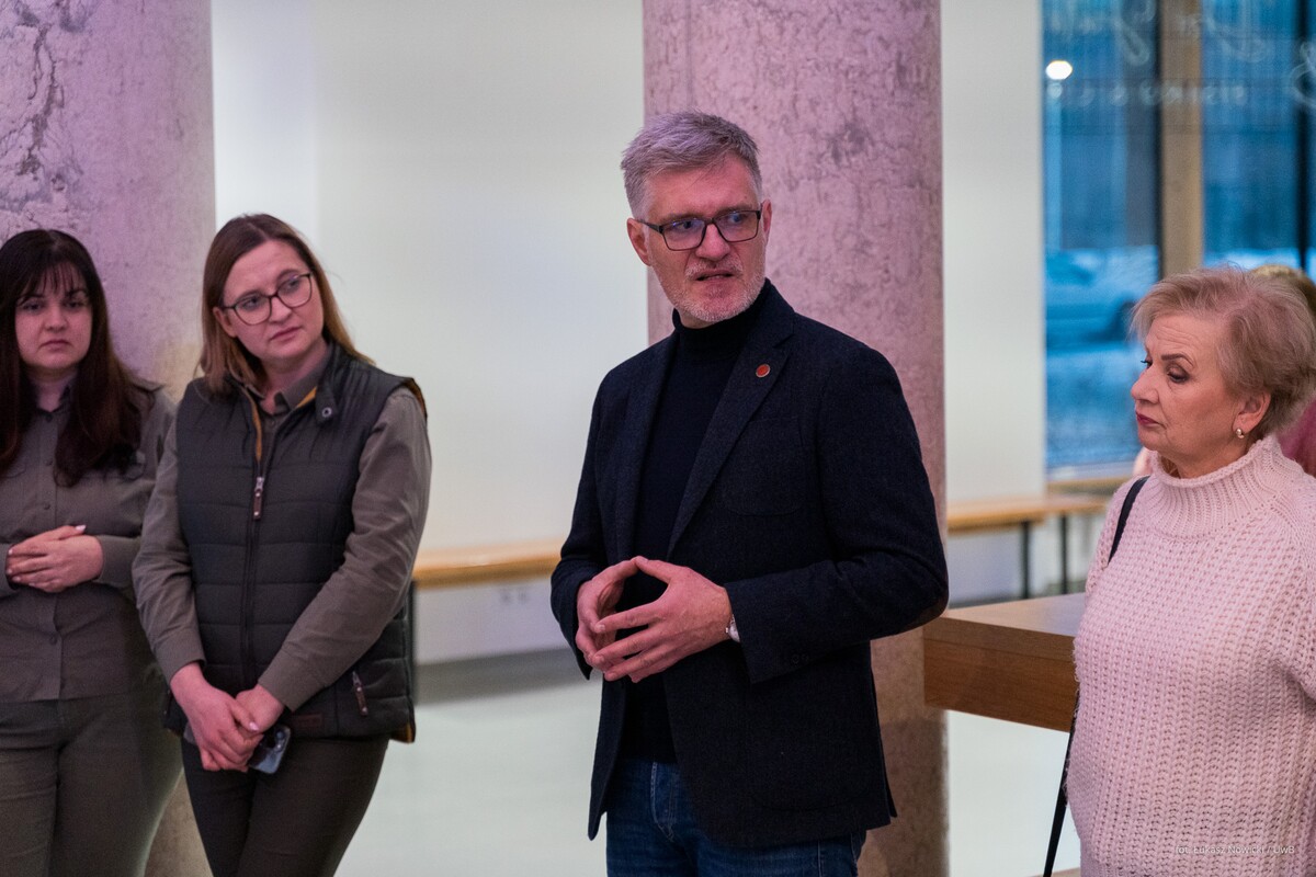 Wernisaż odbył się we wtorek, 3 lutego br. w siedzibie UCKiN. W wydarzeniu wzięli udział m.in. prorektor ds. kształcenia dr hab. Krzysztof Korotkich, prof. UwB, dyrektor Galerii Sleńdzińskich Jolanta Szczygieł-Rogowska, dyrektor UCKiN Dariusz Kryszpiniuk oraz artysta Stanisław Ostaszewski, który oprowadzał gości po wystawie.
