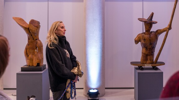W wydobytych w drewnie postaciach odnajdziemy m.in. Don Kichota, Ikara, tancerkę ze słynnego musicalu Moulin Rouge, a nawet Olgę Tokarczuk, którą artysta chciał w ten sposób uhonorować.