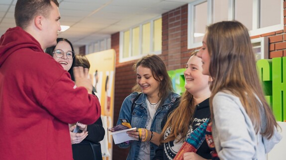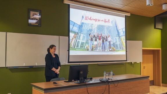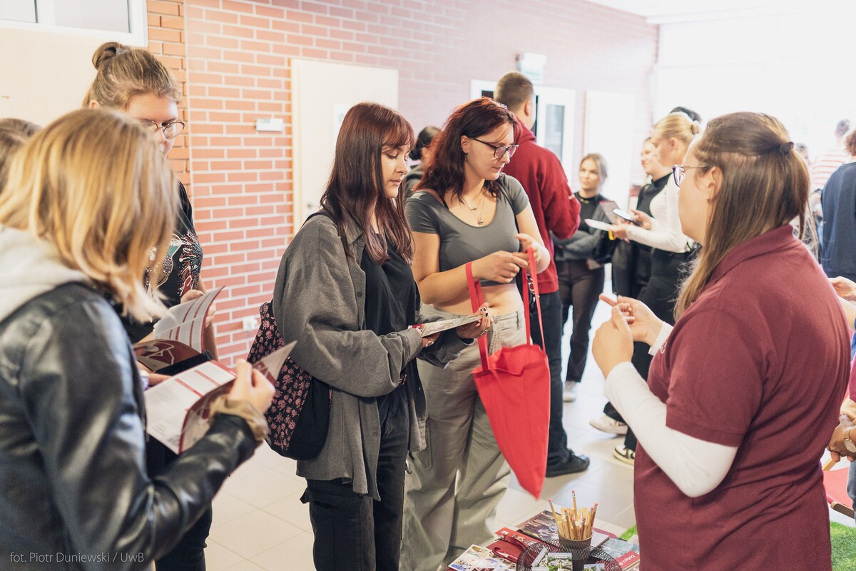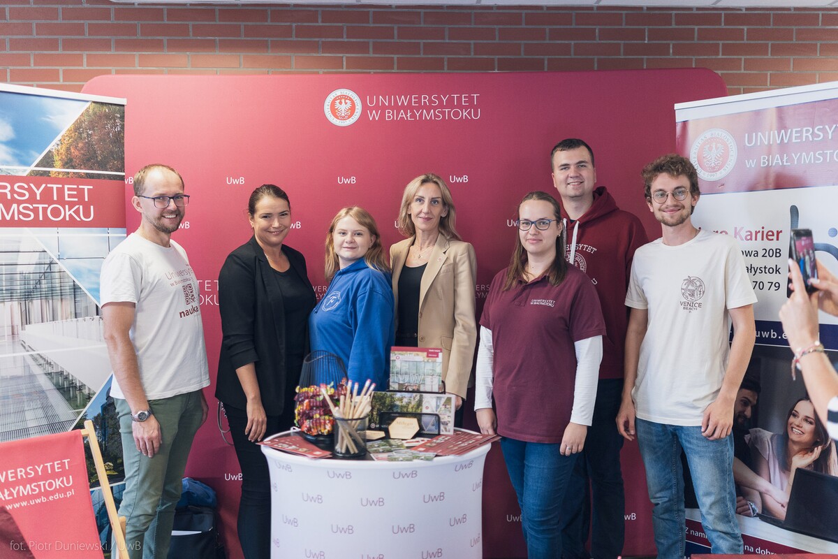 Bezpośrednie spotkanie przedstawicieli Uniwersyteckiego Centrum Rekrutacji, Biura Karier, Działu Promocji oraz studentów UwB z uczniami szkół ponadpodstawowych z Białegostoku i całego województwa podlaskiego odbyło się w piątek 13 września w przestrzeniach Politechniki Białostockiej. W salonie maturzystów obecna była również dr hab. Anna Gardocka-Jałowiec, prof. UwB – prorektor uczelni ds. studentów i doktorantów.