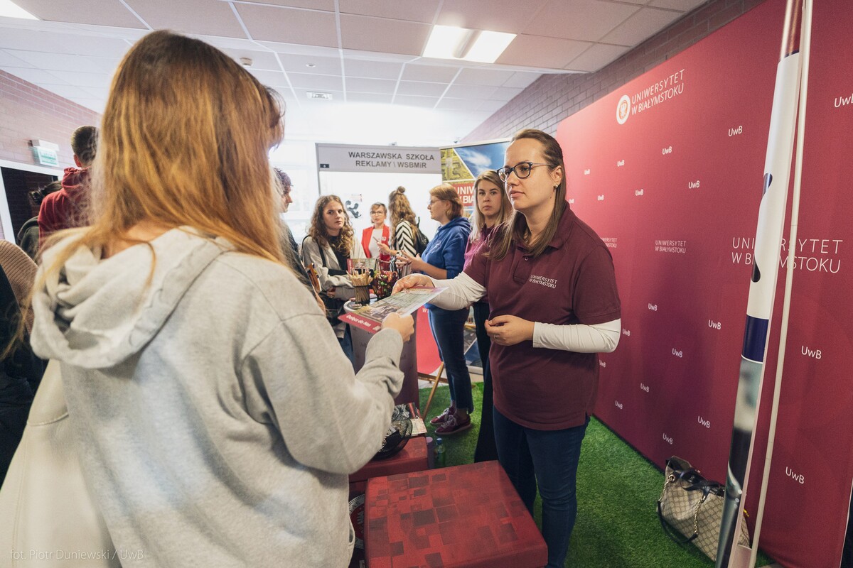 Było mnóstwo dobrych i ciekawych rozmów o studiach, konkretnych kierunkach, ścieżkach kariery, rozwoju i życiu akademickim. Młodzi ludzie pytali nie tylko o możliwości kształcenia ale także o działalność w kołach naukowych i życie studenckie. Jak wiadomo największa podlaska uczelnia oferuje kandydatom studia aż na 15 wydziałach.