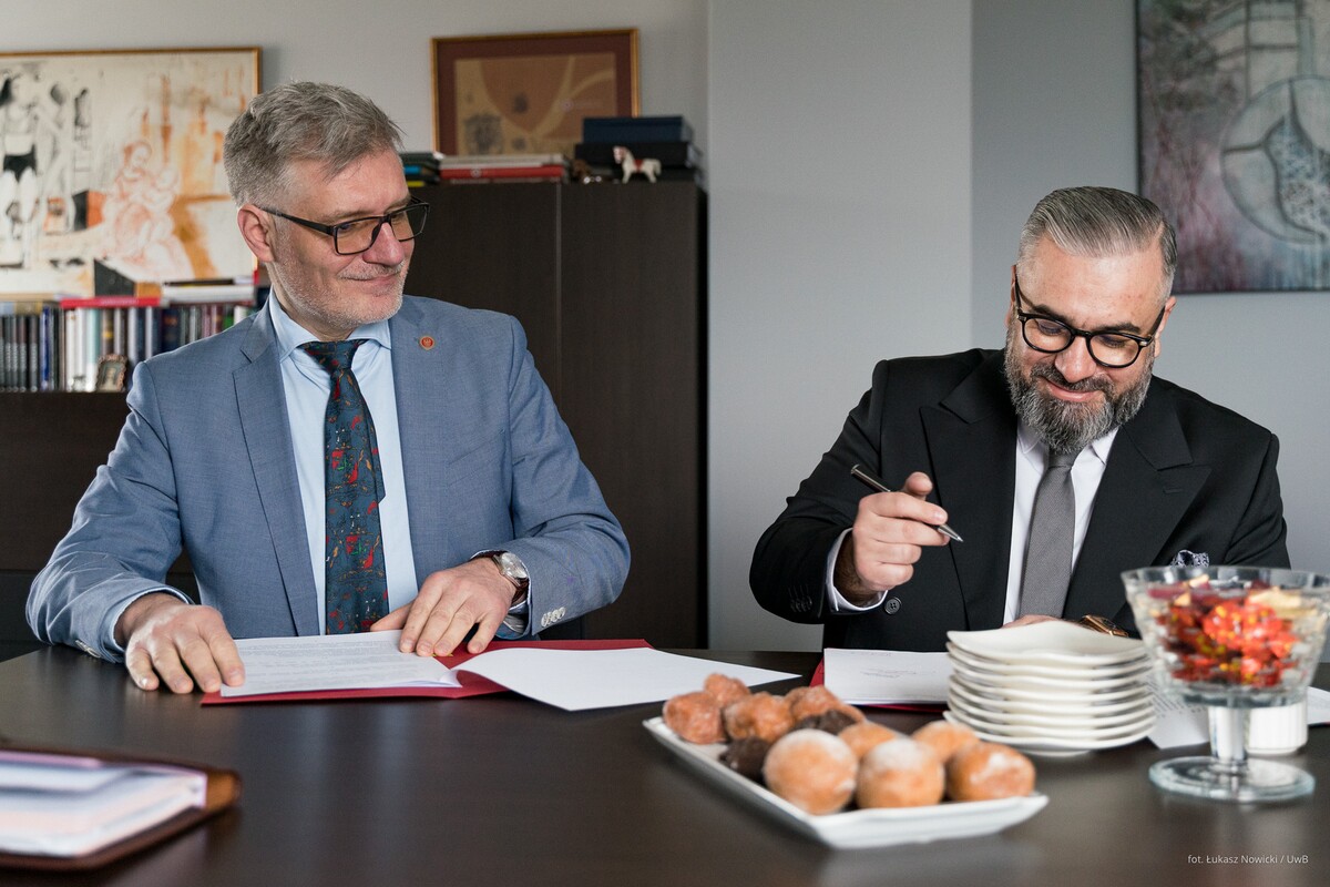 Porozumienie zostało podpisane we wtorek, 17 lutego 2026 r. Po stronie UwB jego koordynatorami będą prorektor ds. kształcenia dr hab. Krzysztof Korotkich prof. UwB oraz prorektor ds. rozwoju dr hab. Tomasz Bajkowski prof. UwB. Centralną Radę Romów w Polsce – Centrum Doradztwa i Informacji dla Romów z siedzibą w Białymstoku reprezentował wiceprezes zarządu Karol Kwiatkowski.