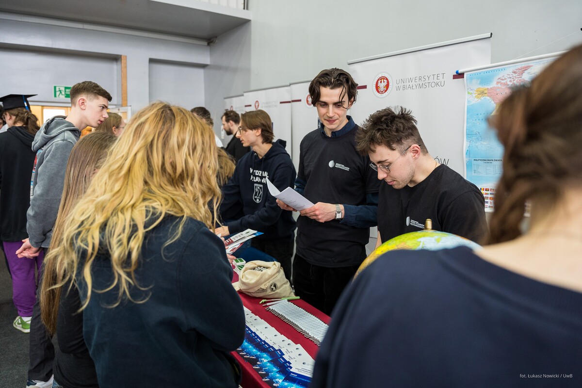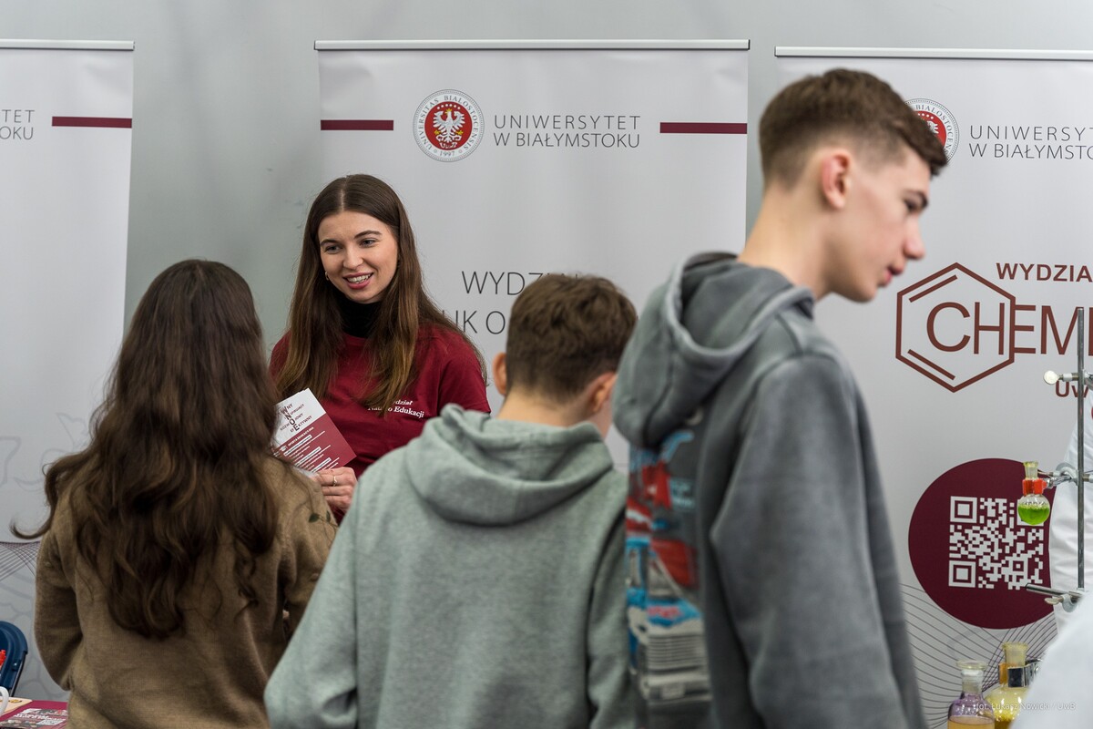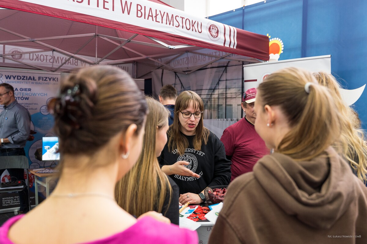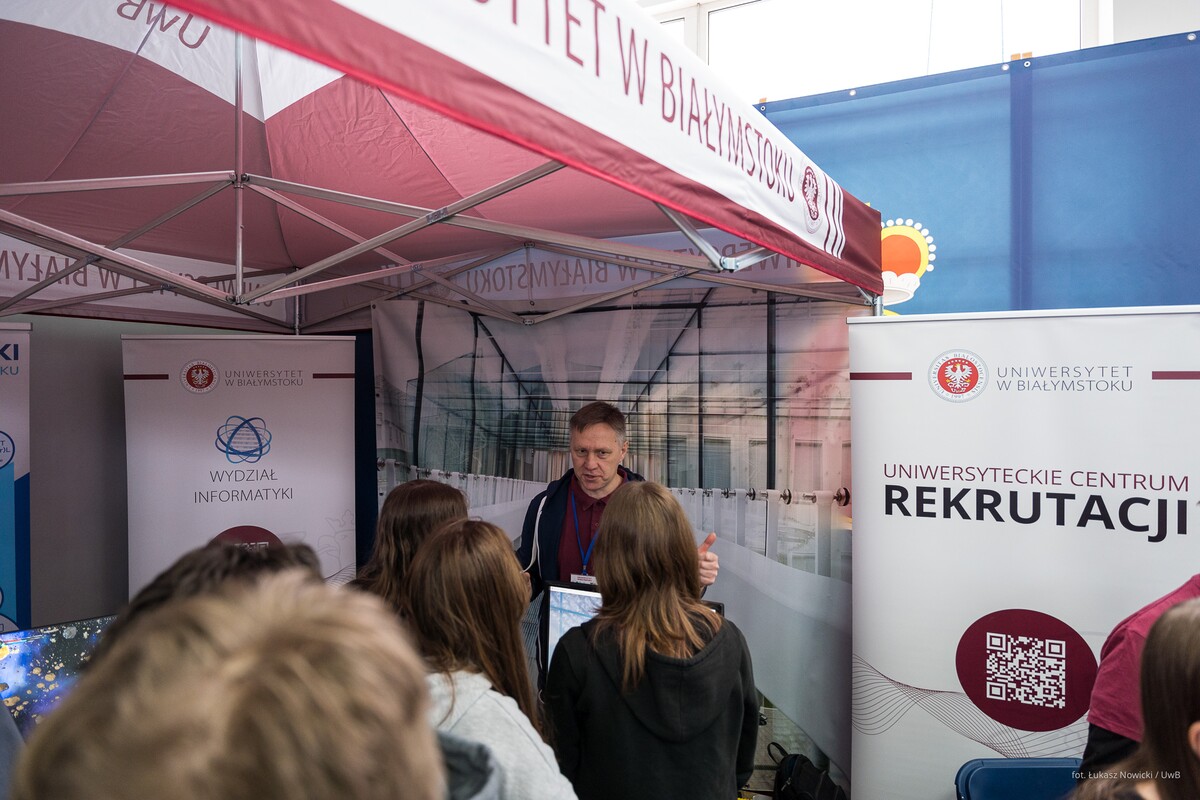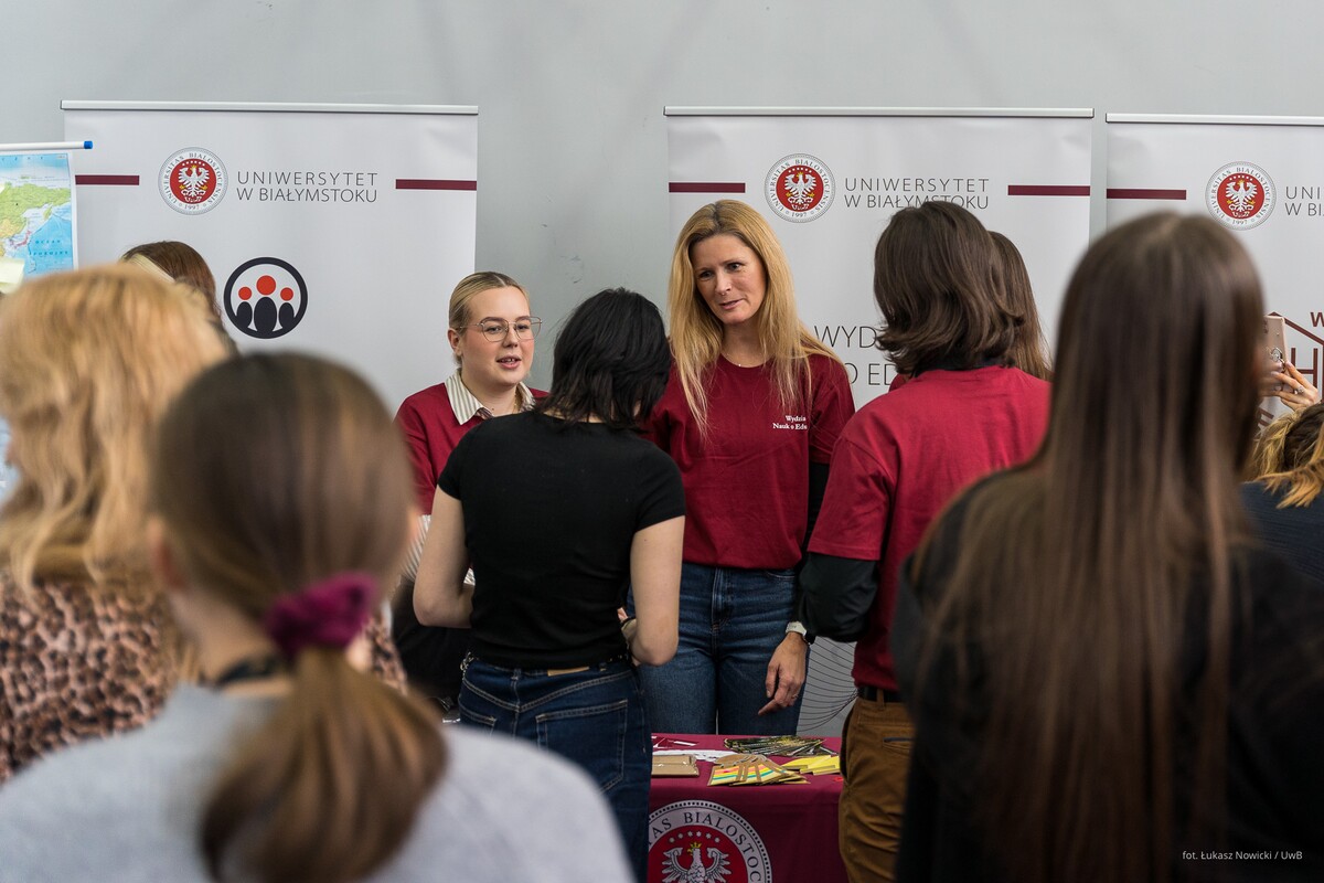 Stoisko Uniwersytetu w Białymstoku cieszyło się ogromnym zainteresowaniem. Młodzież chętnie rozmawiała zarówno z pracownikami uczelni, jak i studentami, zadając liczne pytania dotyczące kierunków studiów, zasad rekrutacji oraz perspektyw zawodowych absolwentów. Dużym powodzeniem cieszyły się również interaktywne aktywności i inicjatywy przygotowane przez poszczególne wydziały oraz studenckie koła naukowe.
