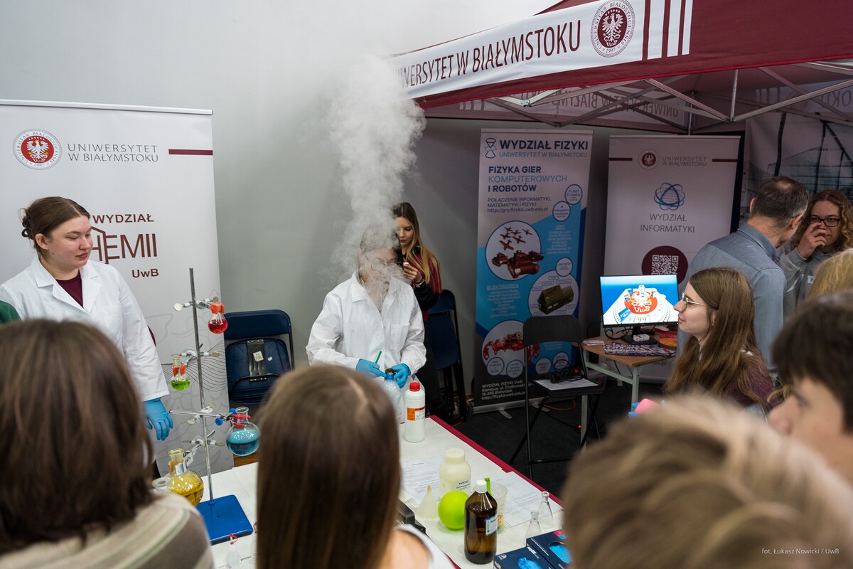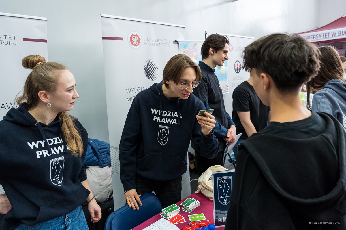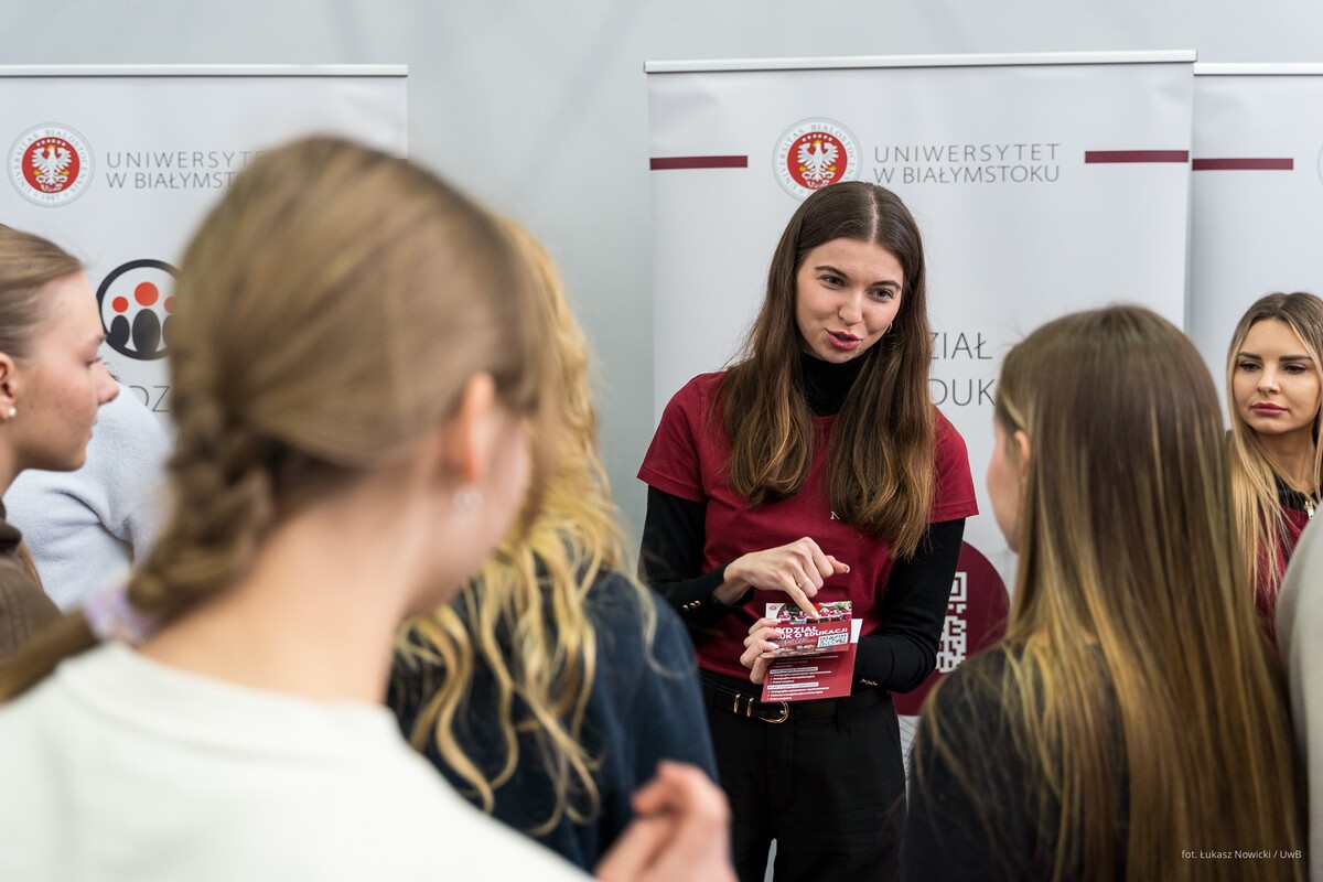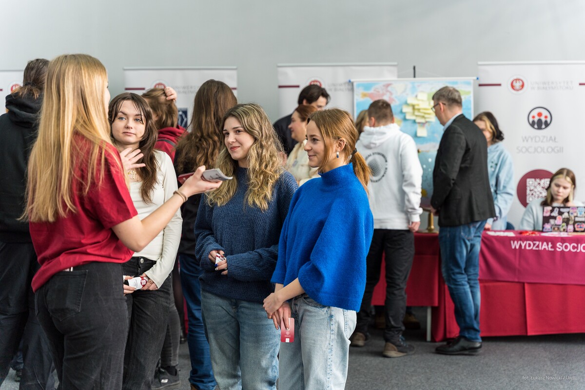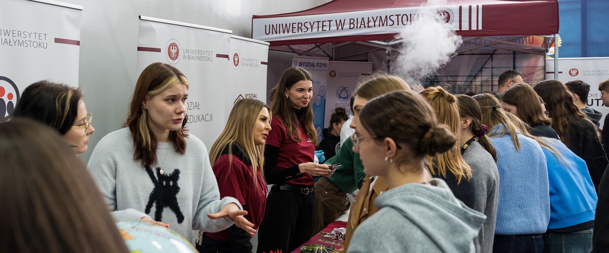 Stoisko Uniwersytetu w Białymstoku cieszyło się ogromnym zainteresowaniem. Młodzież chętnie rozmawiała zarówno z pracownikami uczelni, jak i studentami, zadając liczne pytania dotyczące kierunków studiów, zasad rekrutacji oraz perspektyw zawodowych absolwentów. Dużym powodzeniem cieszyły się również interaktywne aktywności i inicjatywy przygotowane przez poszczególne wydziały oraz studenckie koła naukowe.