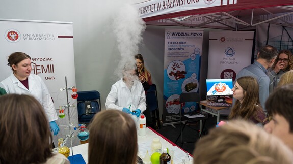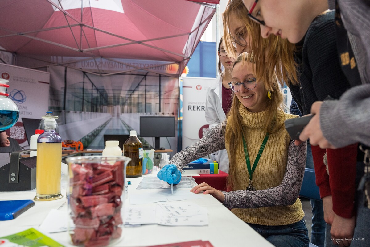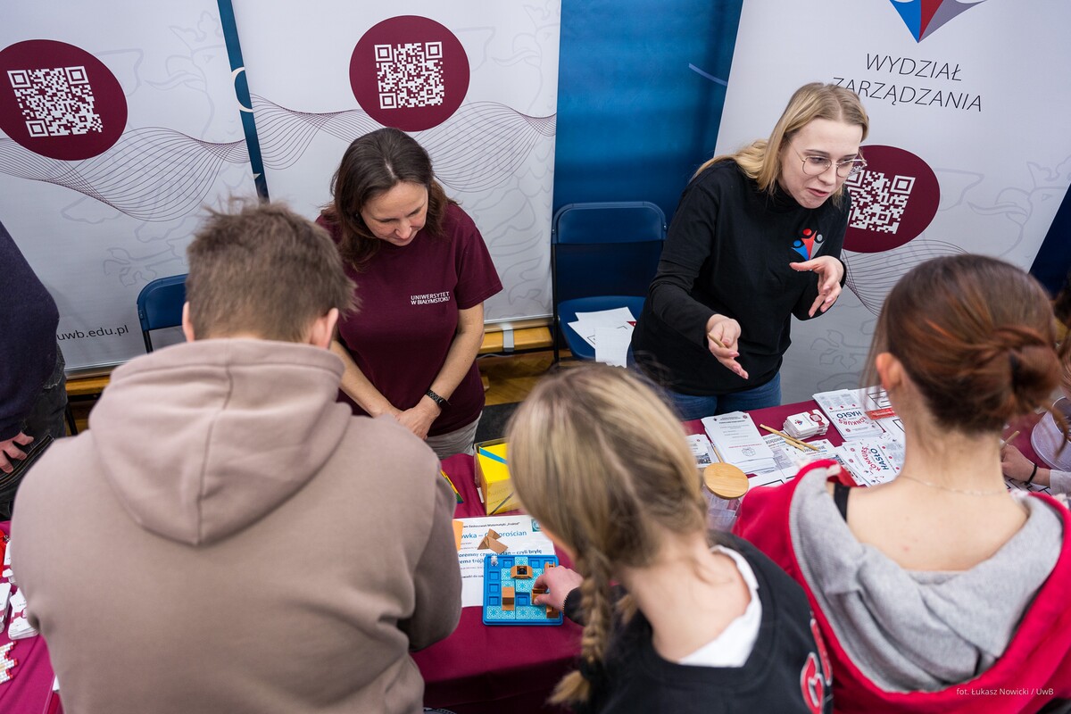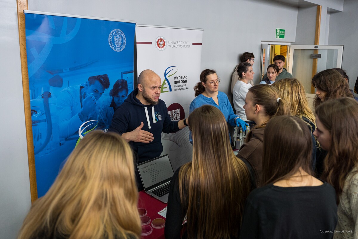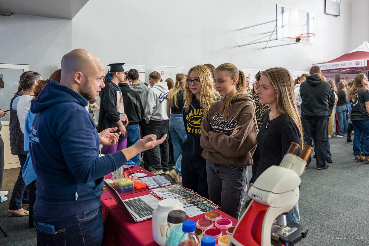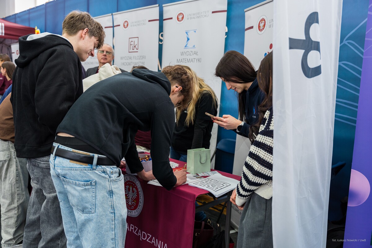 Stoisko Uniwersytetu w Białymstoku cieszyło się ogromnym zainteresowaniem. Młodzież chętnie rozmawiała zarówno z pracownikami uczelni, jak i studentami, zadając liczne pytania dotyczące kierunków studiów, zasad rekrutacji oraz perspektyw zawodowych absolwentów. Dużym powodzeniem cieszyły się również interaktywne aktywności i inicjatywy przygotowane przez poszczególne wydziały oraz studenckie koła naukowe.