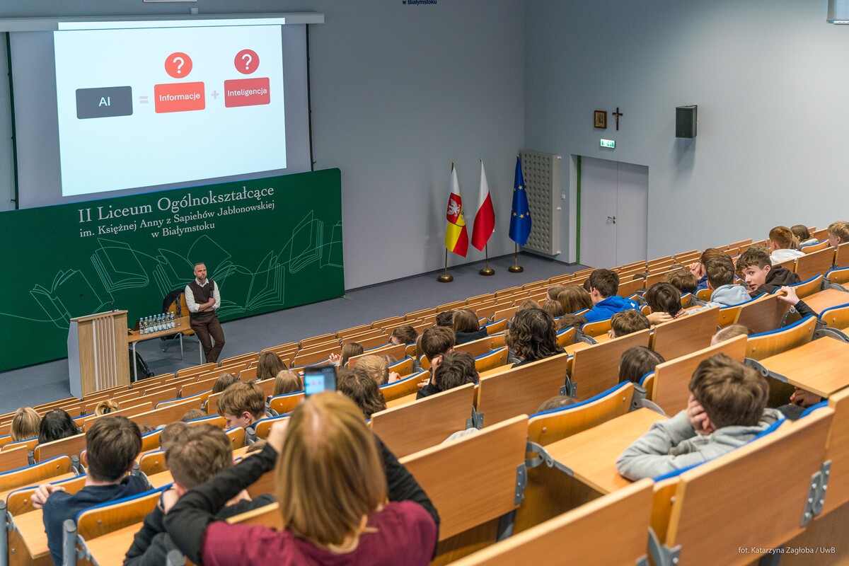 - Dziękujemy uczniom i nauczycielom II Liceum Ogólnokształcącego im. Księżnej Anny z Sapiehów Jabłonowskiej w Białymstoku za inspirujące spotkanie, liczne rozmowy i aktywny udział w wydarzeniu. Mamy nadzieję, że zdobyte informacje pomogą młodzieży w podejmowaniu świadomych decyzji edukacyjnych – mówi Magda Zaręba, Pełnomocnik Rektora ds. koordynacji promocji wydziałów i innych jednostek Uczelni.