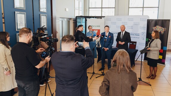 - Dziękuję Panie Rektorze za otwartość na tę naszą wspólną inicjatywę i za to, że punkt RPO może znajdować się na Wydziale Prawa Uniwersytetu w Białymstoku. To jedyny punkt, który znajduje się na uczelni – przypominał w czasie konferencji marszałek Łukasz Prokorym. - Jestem przekonany, że wspólne działania samorządu województwa i uniwersytetu, wsparte aktywnością organizacji pozarządowych, sprawią, że już za kilka miesięcy będziemy mogli cieszyć się ze stałej obecności pełnomocnika – podkreślił marszałek.