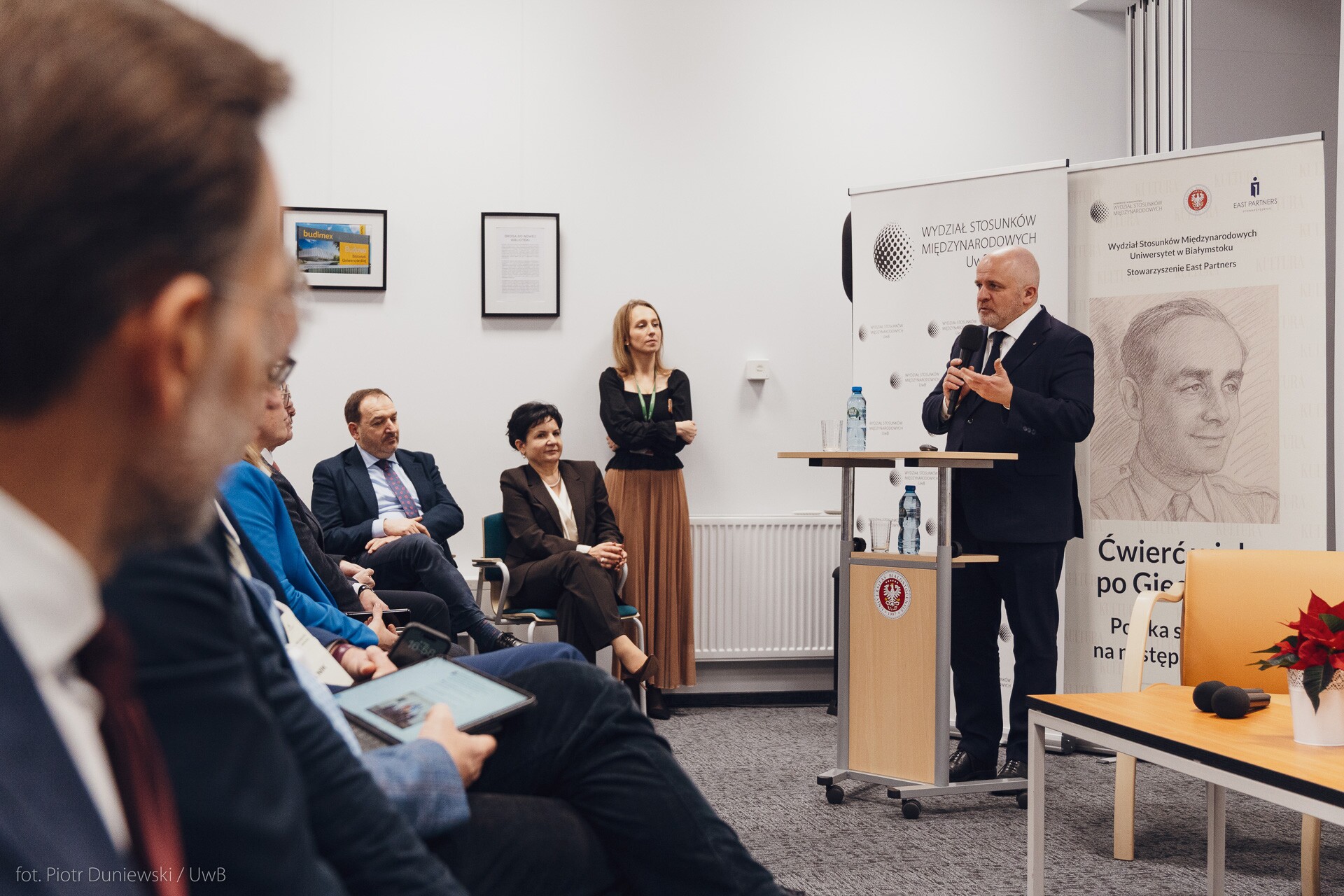 The event was organised on 10 December by the Faculty of International Relations of the University of Białystok in cooperation with the East Partners Association. The symposium brought together many distinguished guests, including former President of the Republic of Poland Aleksander Kwaśniewski and former Prime Minister Jan Krzysztof Bielecki.