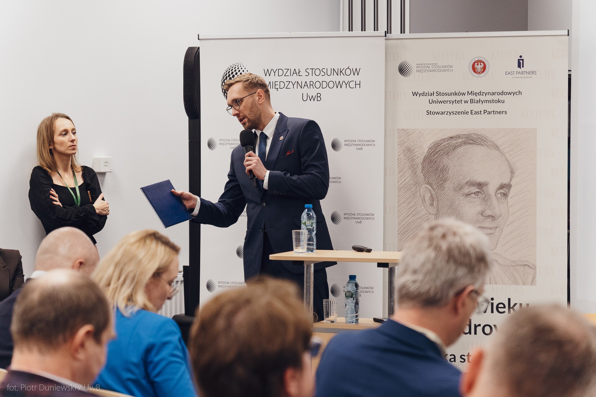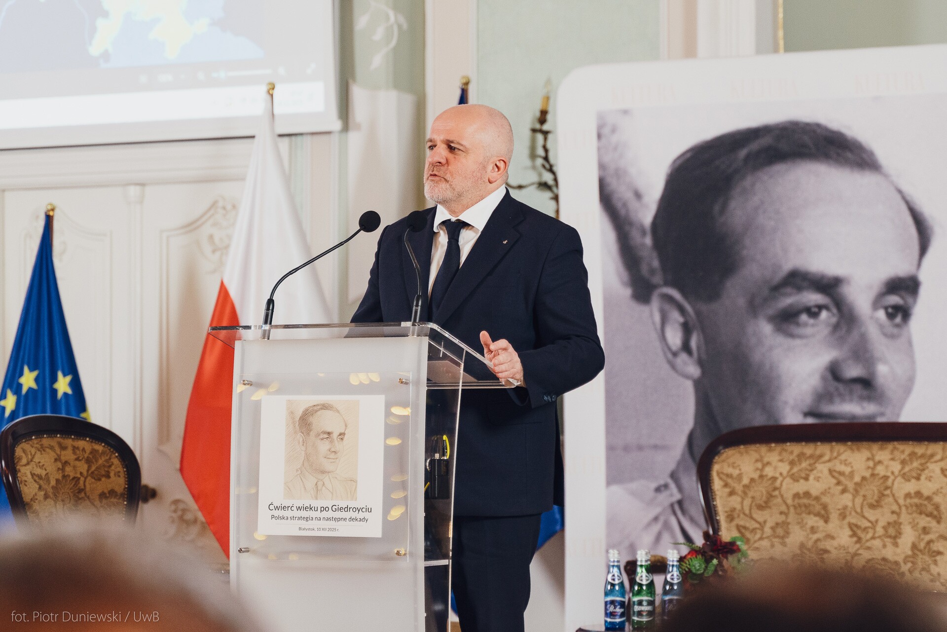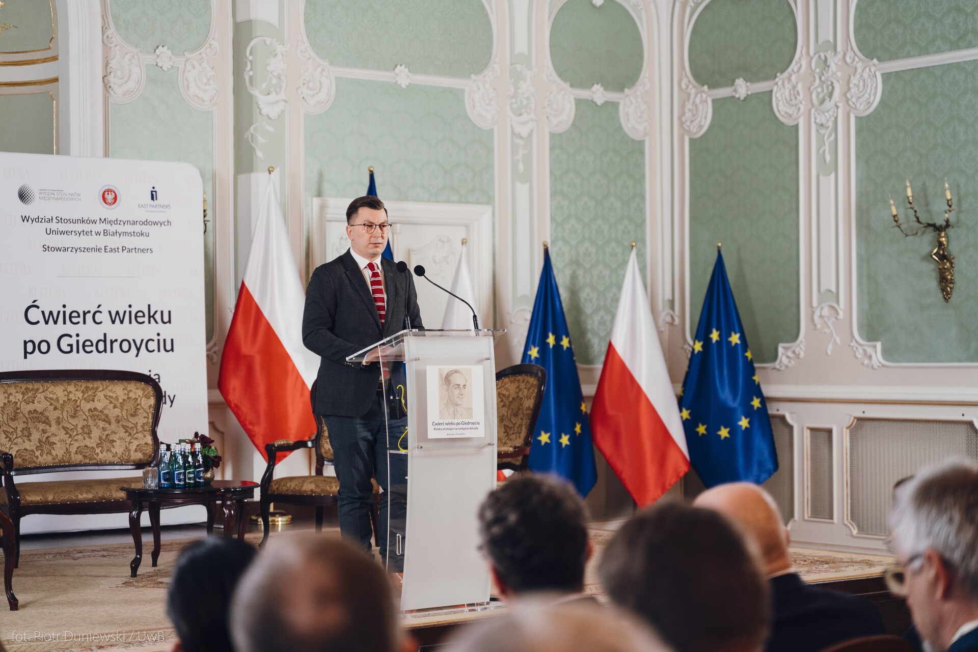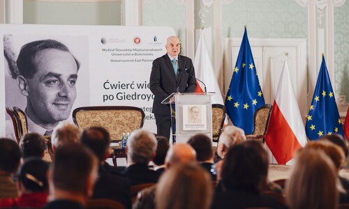 The guests were officially welcomed by the Rector of the University of Białystok, Prof. Dr hab. Mariusz Popławski, who in his address, referring to the ideas of Jerzy Giedroyc, spoke about the role of the University and the region in building relations with Eastern Europe. He also recalled, among other things, that the editor of Kultura (Culture) monthly periodical was the first recipient of the title of Doctor Honoris Causa of the University of Białystok.