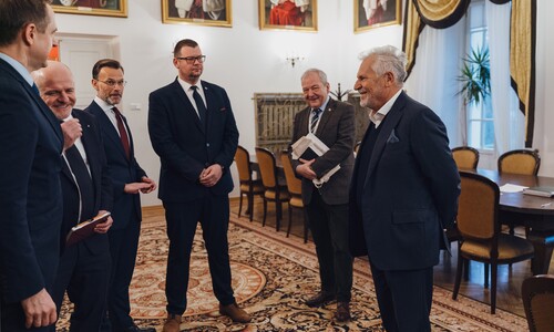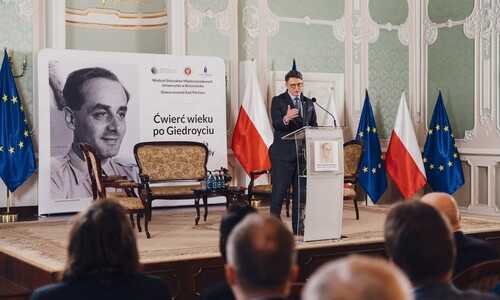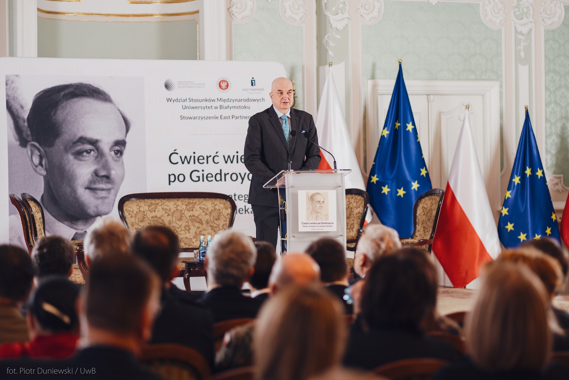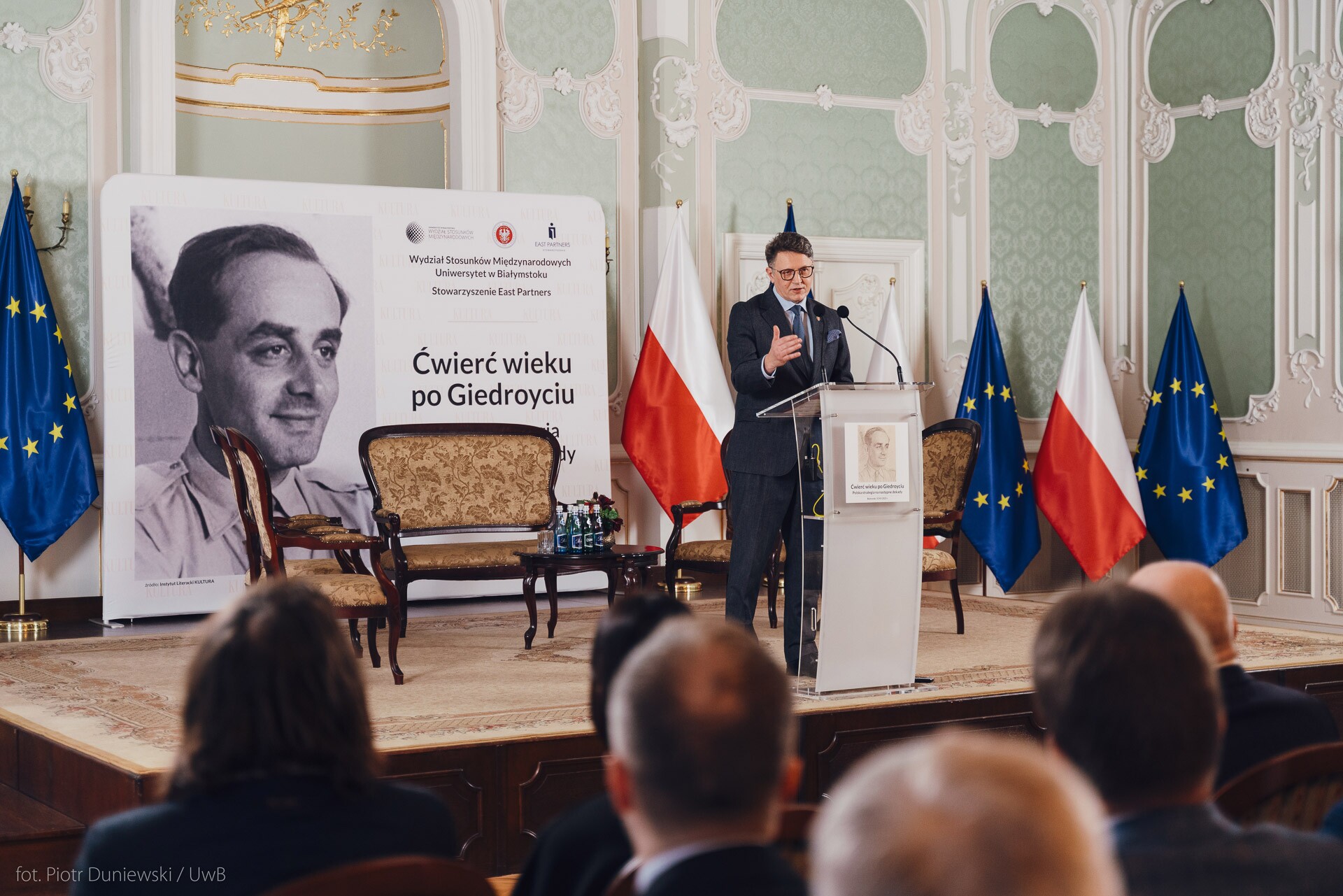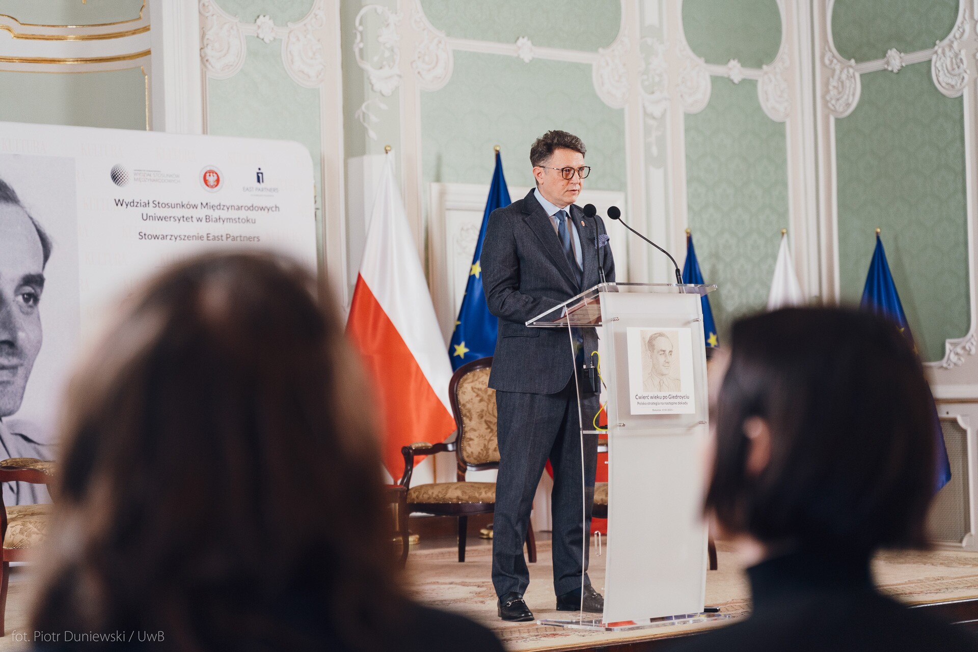 The guests were officially welcomed by the Rector of the University of Białystok, Prof. Dr hab. Mariusz Popławski, who in his address, referring to the ideas of Jerzy Giedroyc, spoke about the role of the University and the region in building relations with Eastern Europe. He also recalled, among other things, that the editor of Kultura (Culture) monthly periodical was the first recipient of the title of Doctor Honoris Causa of the University of Białystok.
