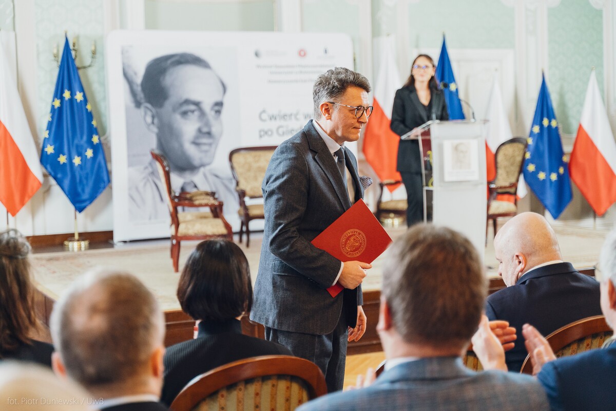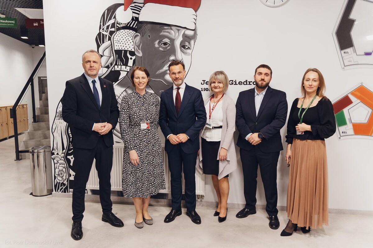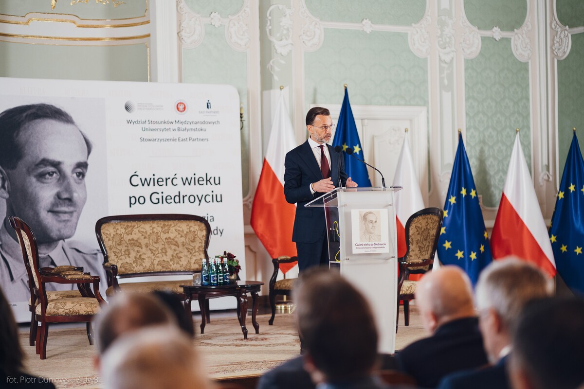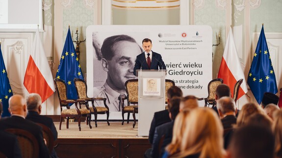 The guests were officially welcomed by the Rector of the University of Białystok, Prof. Dr hab. Mariusz Popławski, who in his address, referring to the ideas of Jerzy Giedroyc, spoke about the role of the University and the region in building relations with Eastern Europe. He also recalled, among other things, that the editor of Kultura (Culture) monthly periodical was the first recipient of the title of Doctor Honoris Causa of the University of Białystok.