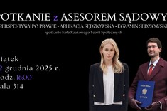 Koło Naukowe Teorii Społecznych im. dra Sławomira Oliwnika działające na Wydziale Prawa Uniwersytetu w Białymstoku zaprasza na "Spotkanie z Asesorem Sądowym - perspektywy po prawie, aplikacja sędziowska, egzamin sędziowski".
