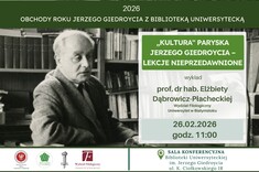W ramach obchodów Roku Jerzego Giedroycia Biblioteka Uniwersytecka im. Jerzego Giedroycia zaprasza na spotkanie z prof. dr hab. Elżbietą Dąbrowicz-Płachecką z Wydziału Filologicznego Uniwersytetu w Białymstoku. Wykład pt. „Lekcje nieprzedawnione”, obejmie szerokie spektrum zagadnień od polityki po literaturę.