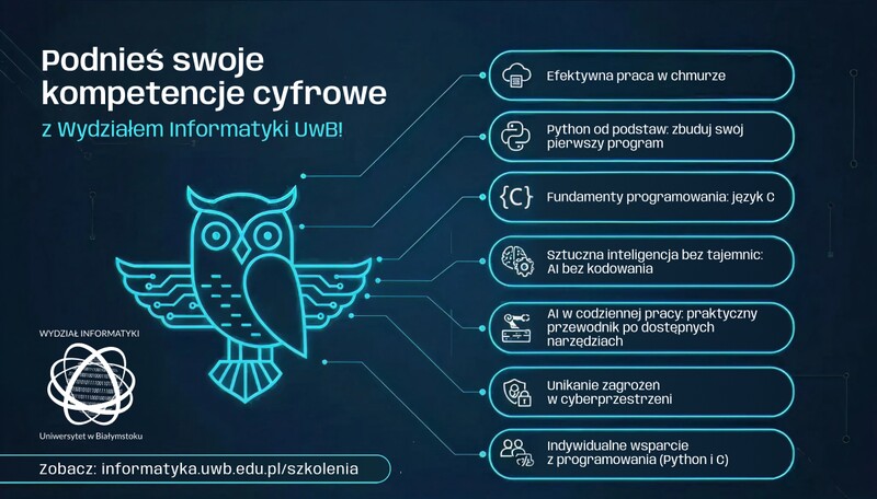 Szczegółowa oferta dostępna jest na stronie: https://informatyka.uwb.edu.pl/szkolenia